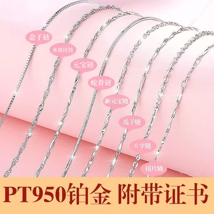 Yan's PT950 platinum necklace for women 18k gold necklace clavicle chain color gold naked chain versatile thin chain Valentine's Day gift platinum Chopard chain 50+5 cm (adjustable) chain thickness about 1.7