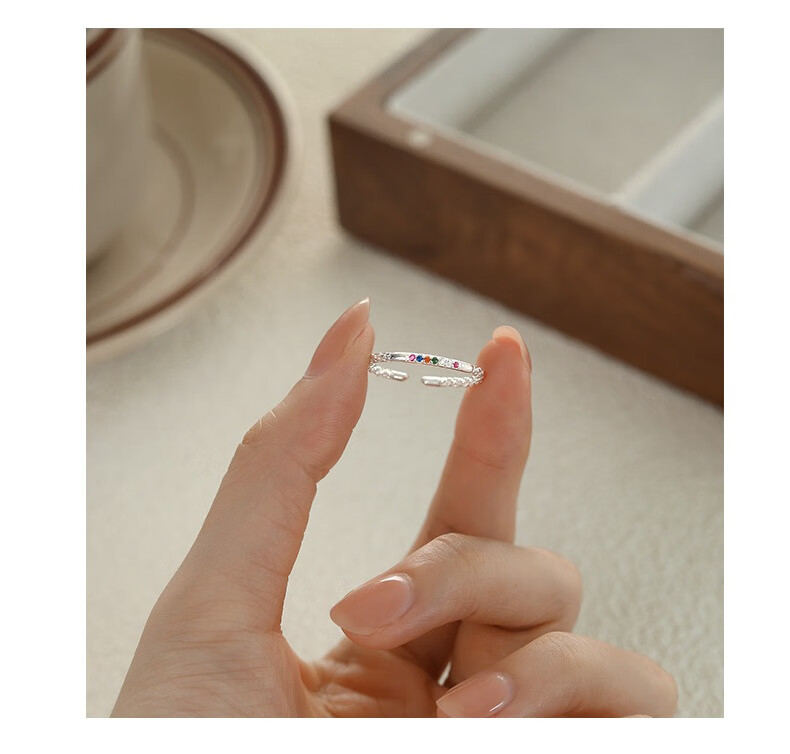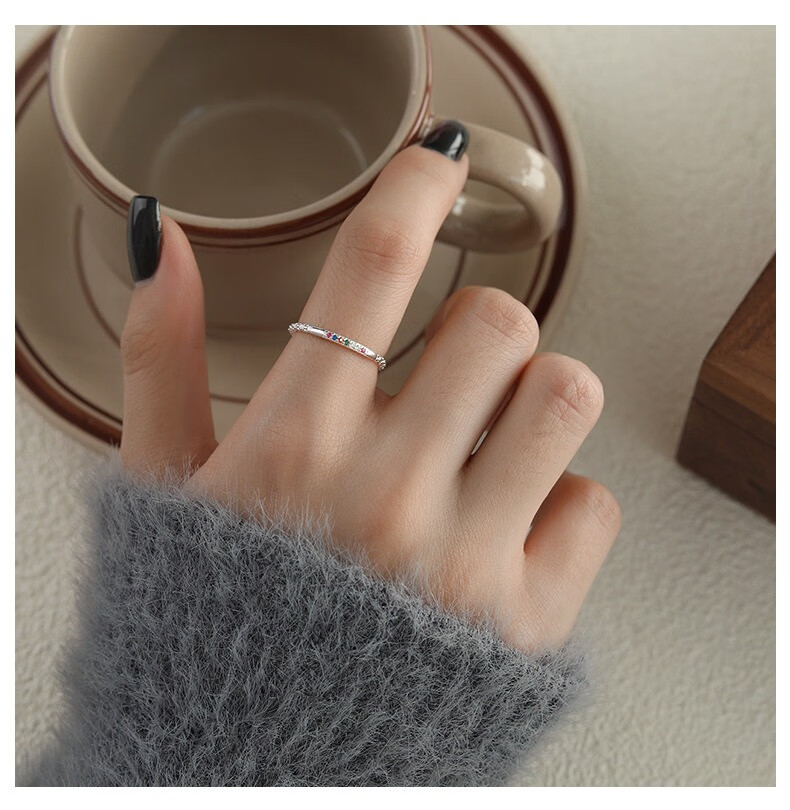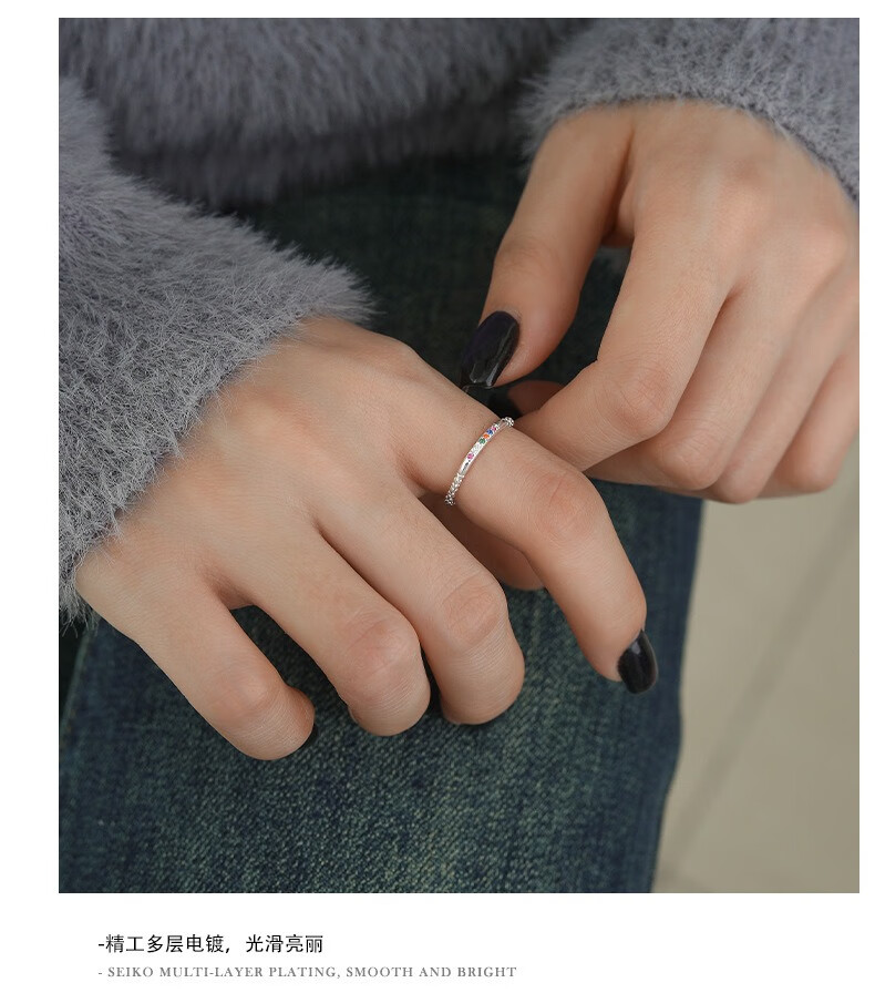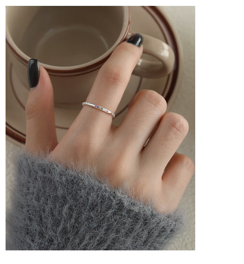 Su Shiliu Light Luxury Sparkling Diamond Colored Zircon Ring for Women 925 Silver Opening Adjustable Fashion Niche Design Hand Jewelry Gift Colored Diamond Opening Ring