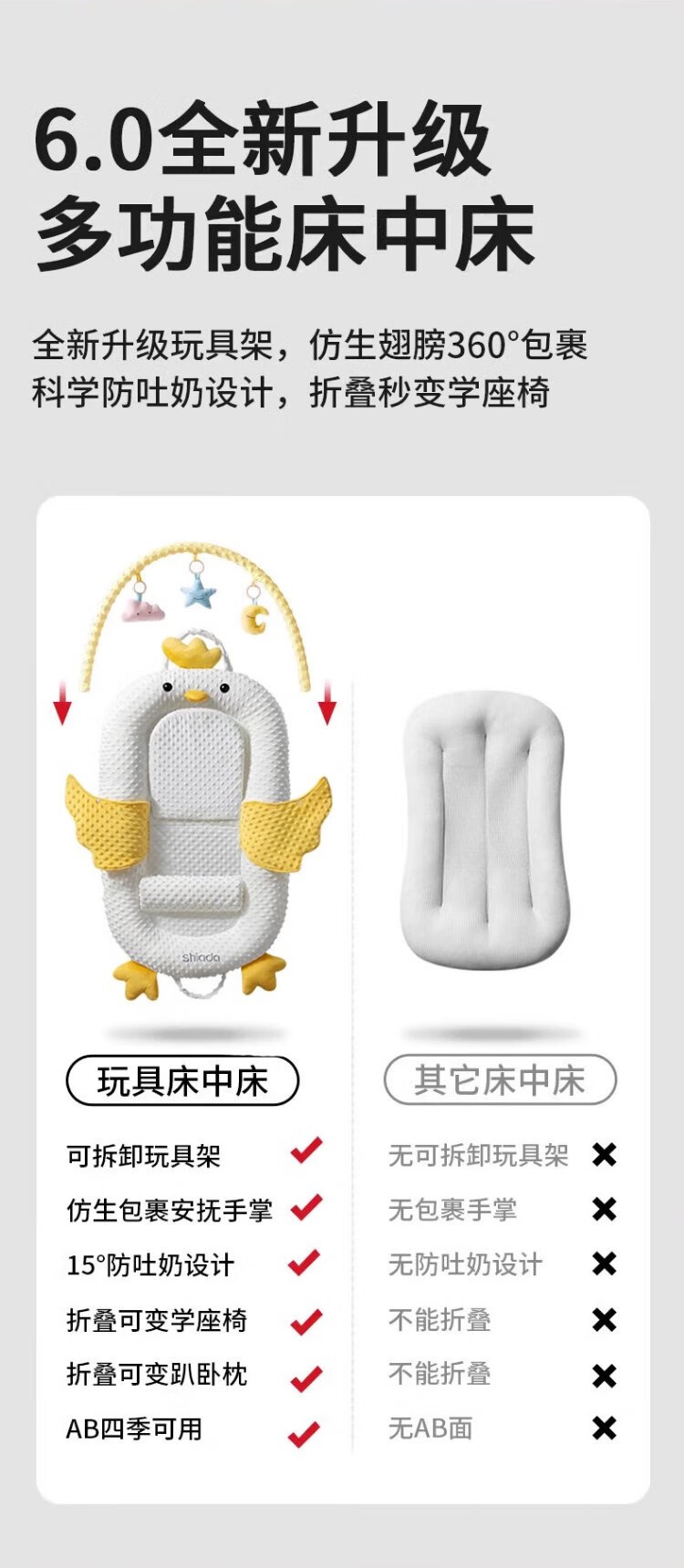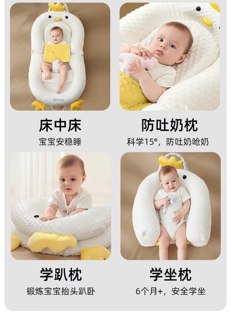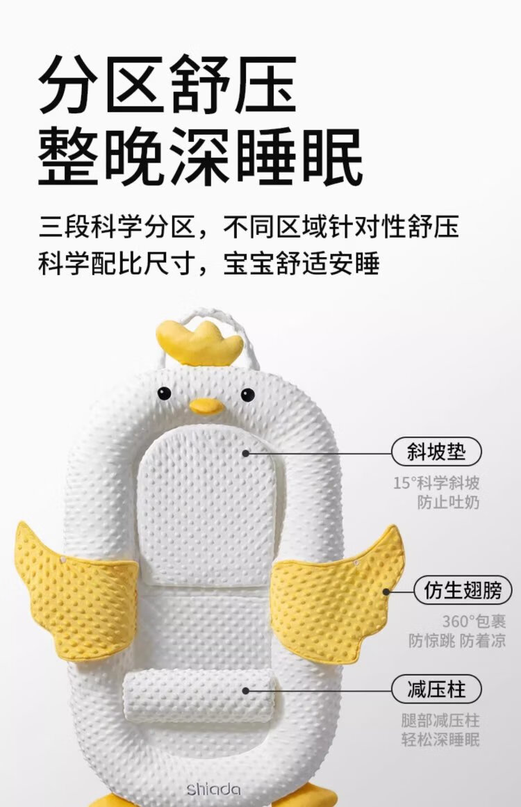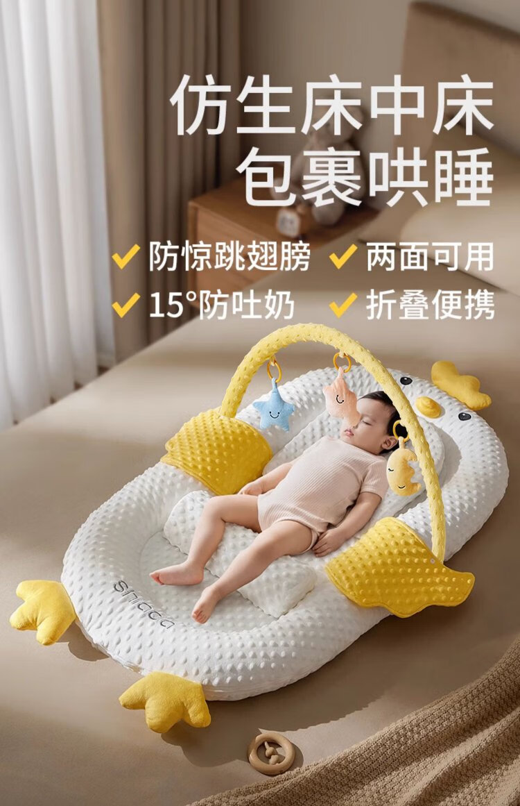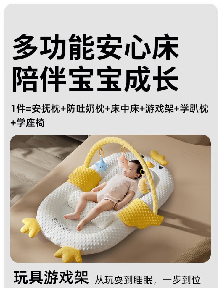 Xin'andai crib middle bed slope pillow anti-vomiting and overflowing milk choking pillow newborn baby comfort pillow lying down breastfeeding artifact gift bag crib + slope cushion + toy rack