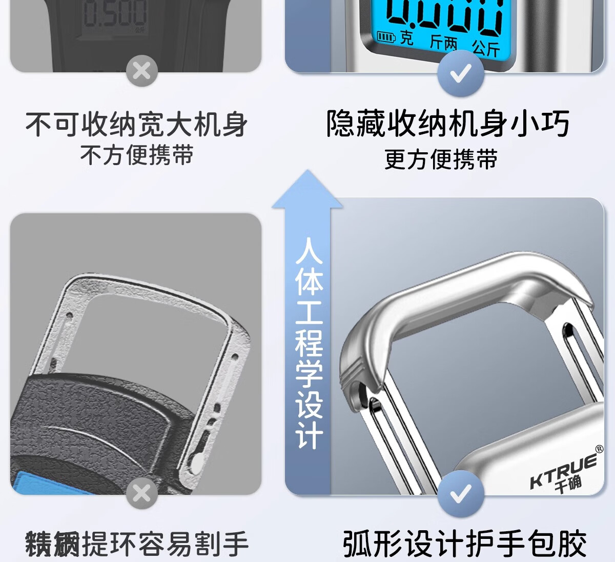 Qianque 2025 new portable portable electronic scale gram scale accurate household small luggage scale high-precision mini grocery shopping small gram scale Jin Jin is equal to 0.5 kg Two commercial rechargeable fish scale portable scale rechargeable model 50 Jin Jin is equal to 0.5 kg Charging cable Storage bag