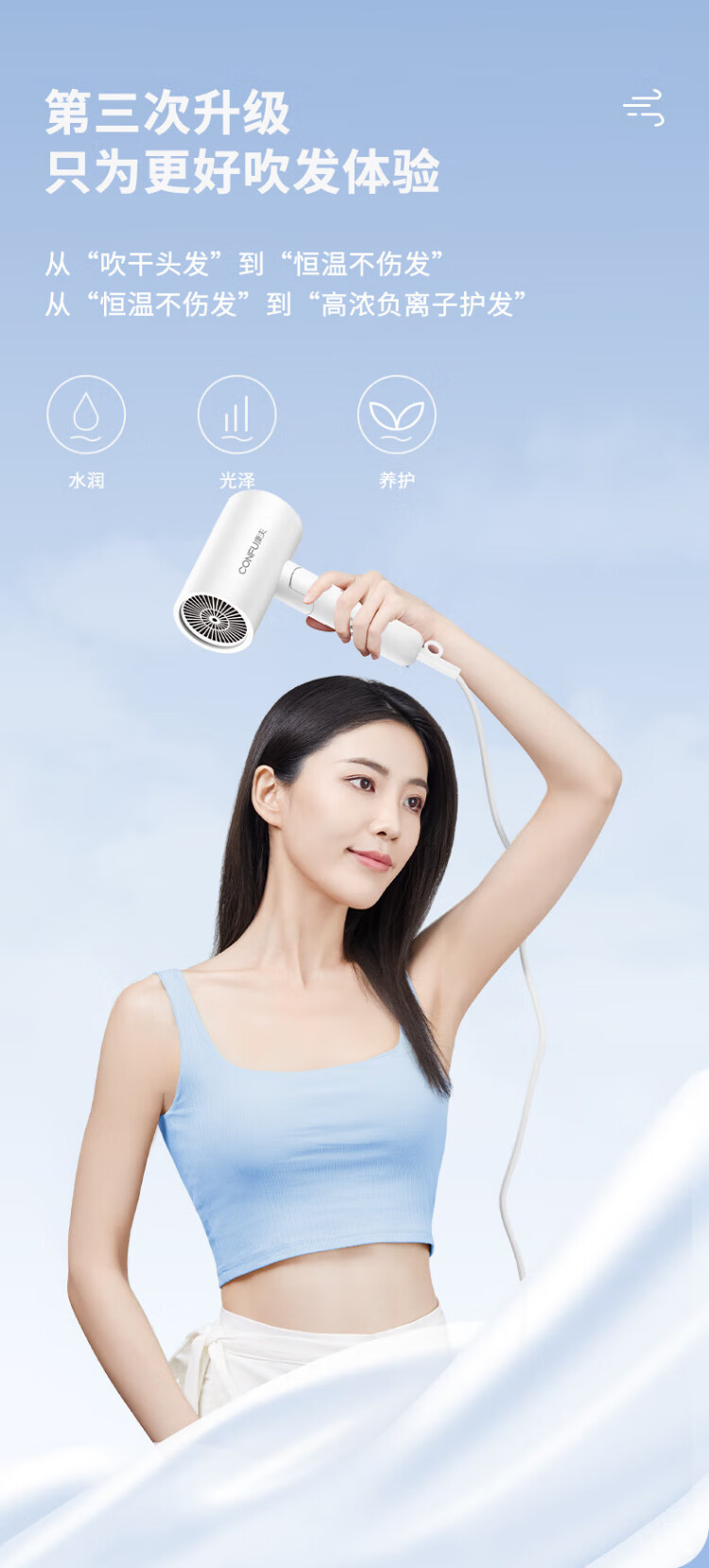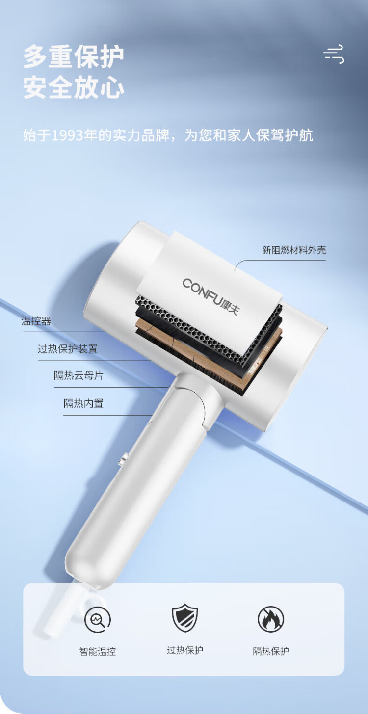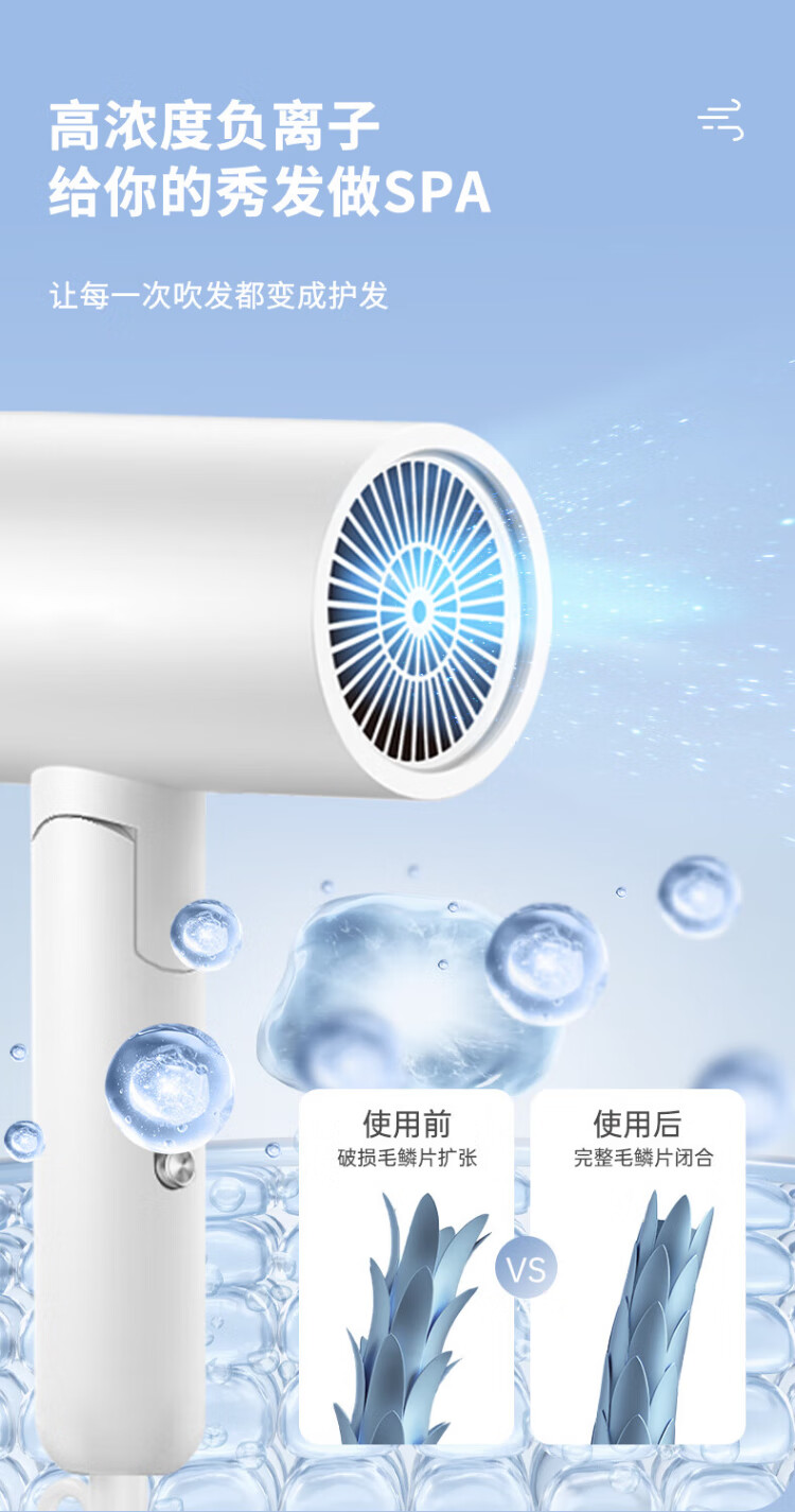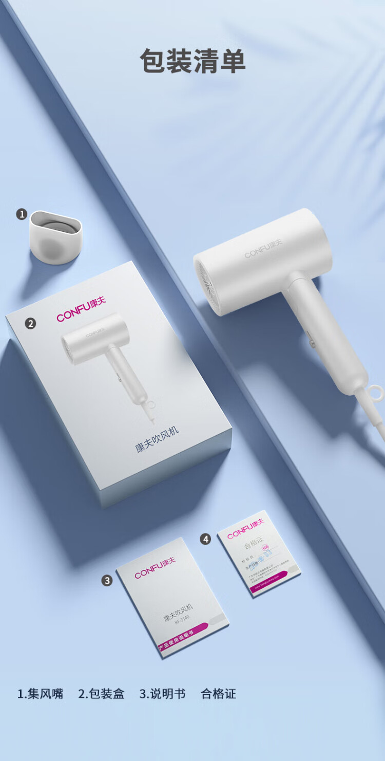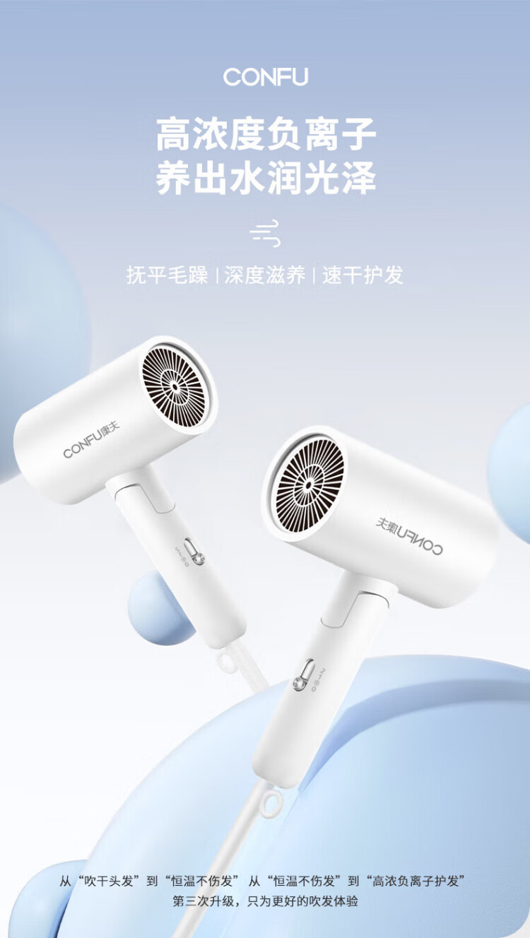 CONFU hair dryer household high-power quick-drying hair care hair dryer dormitory travel portable foldable 3C certified hair dryer holiday gift for boyfriend and girlfriend Xingyao Silver 1800W-negative ion hair care 3151
