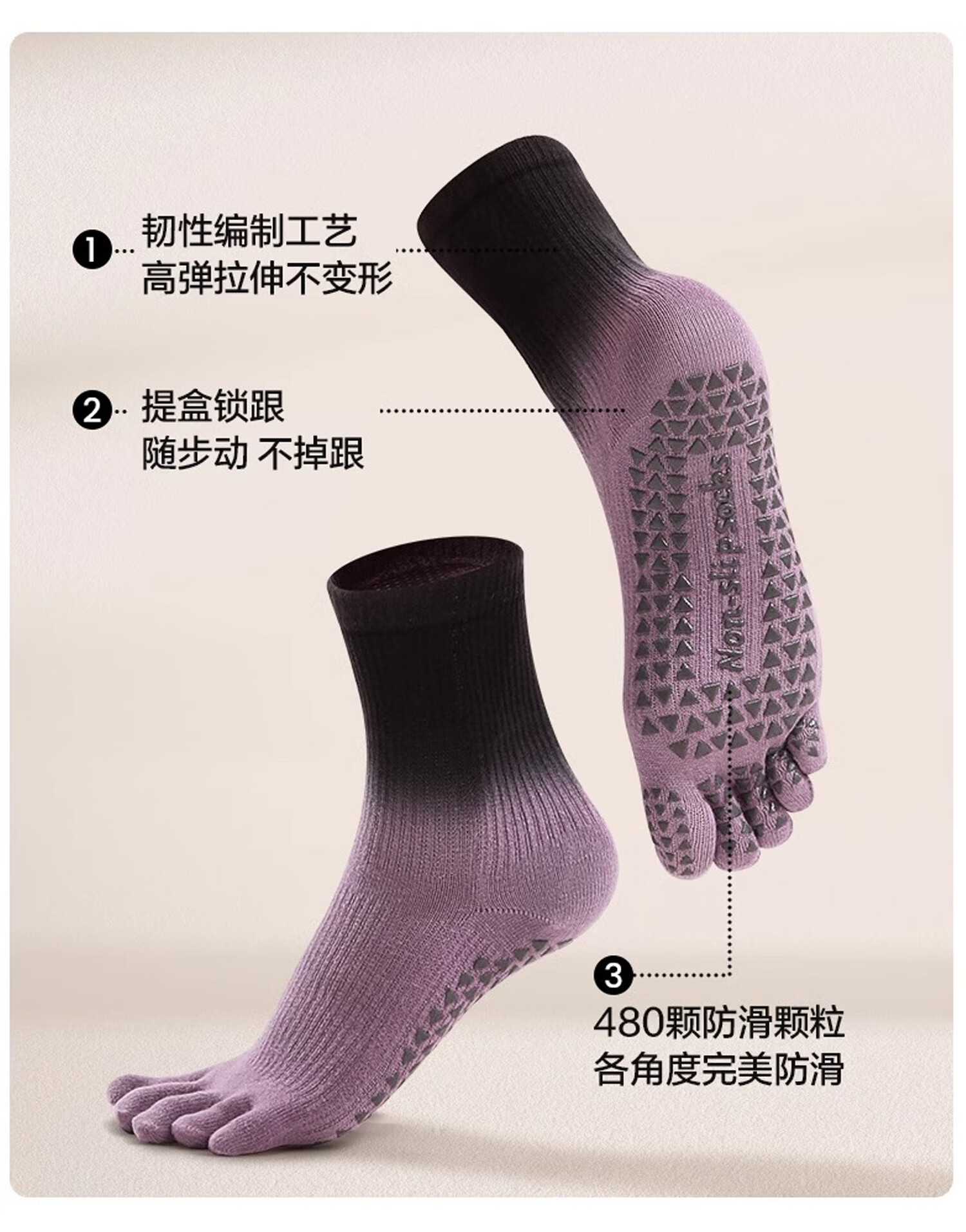 SPXINE yoga socks five-finger Pilates special training mid-calf non-slip socks autumn and winter indoor acupressure board sports professional women can contact customer service to mix and match two pairs