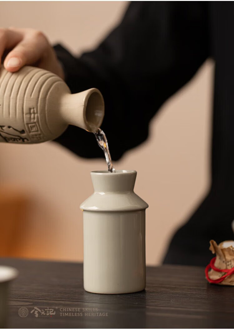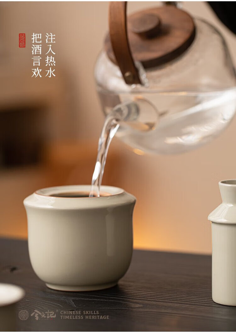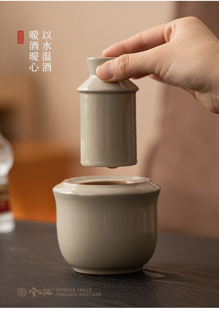 Xiyuanji wine warmer ceramic scalding wine warmer pot yellow wine warmer pot two liang white wine hot wine pot household new style vegetable gray Yuanyue wine warmer set simple package