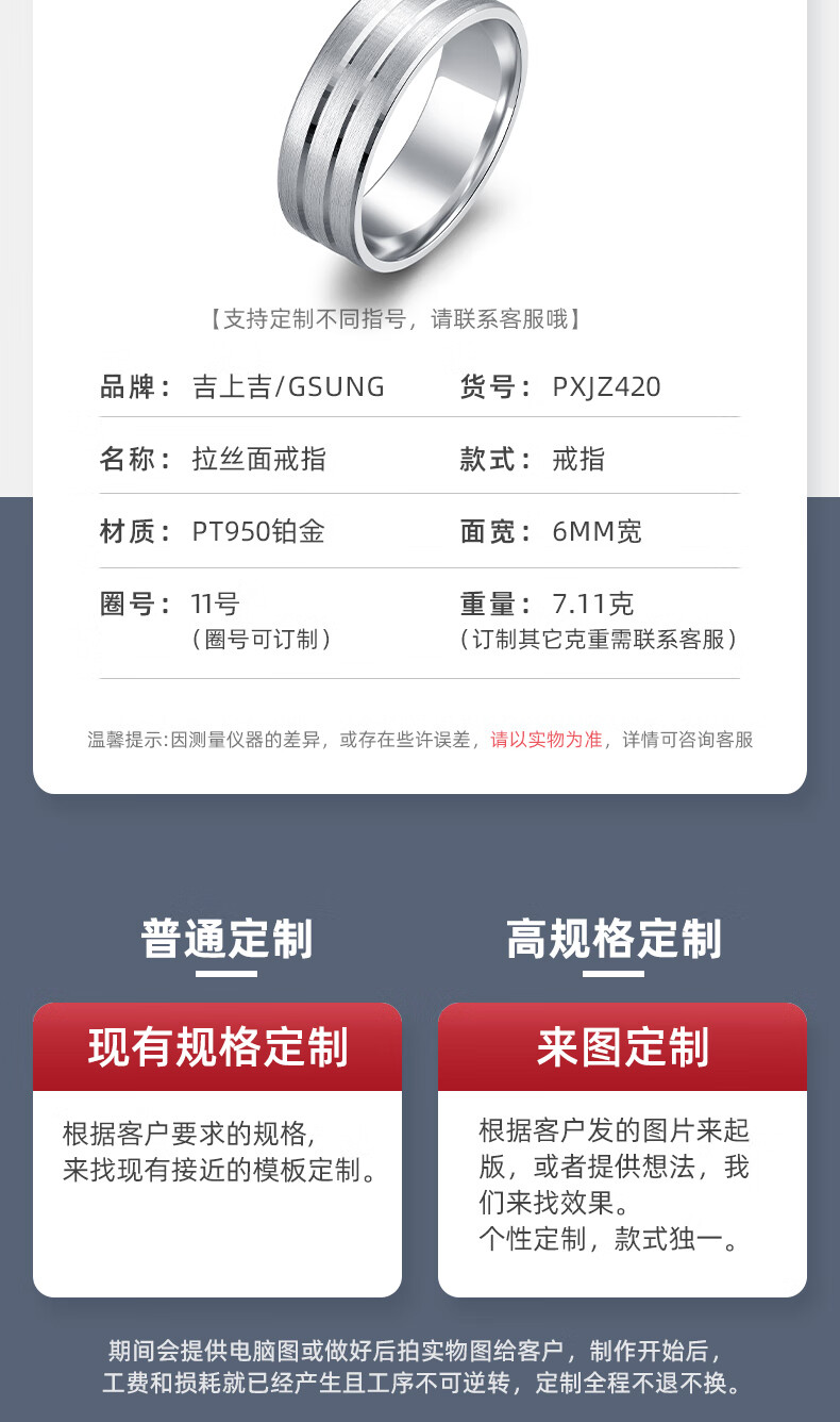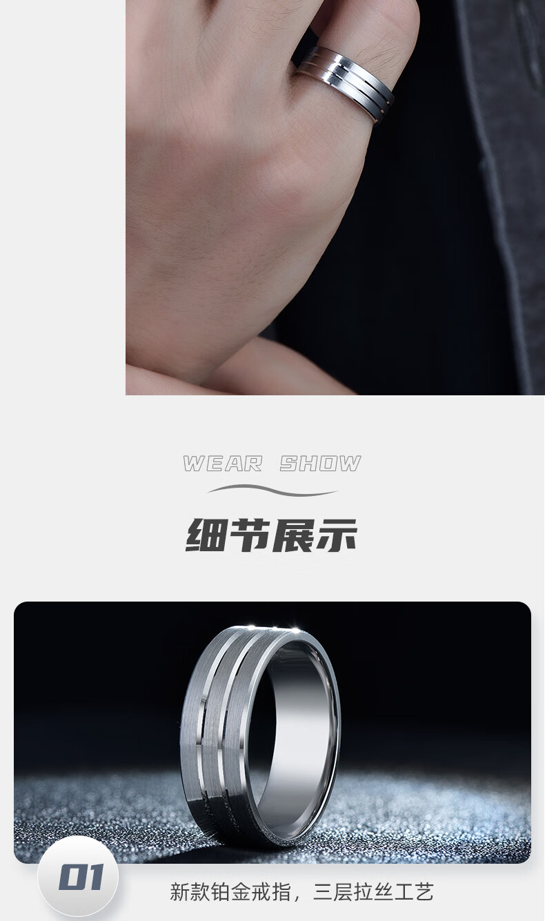 Platinum men's ring new PT950 brushed matte ring platinum ring women's inner curve wide ring PT950 ring about 8 grams pre-order