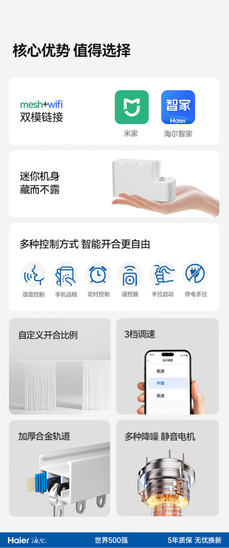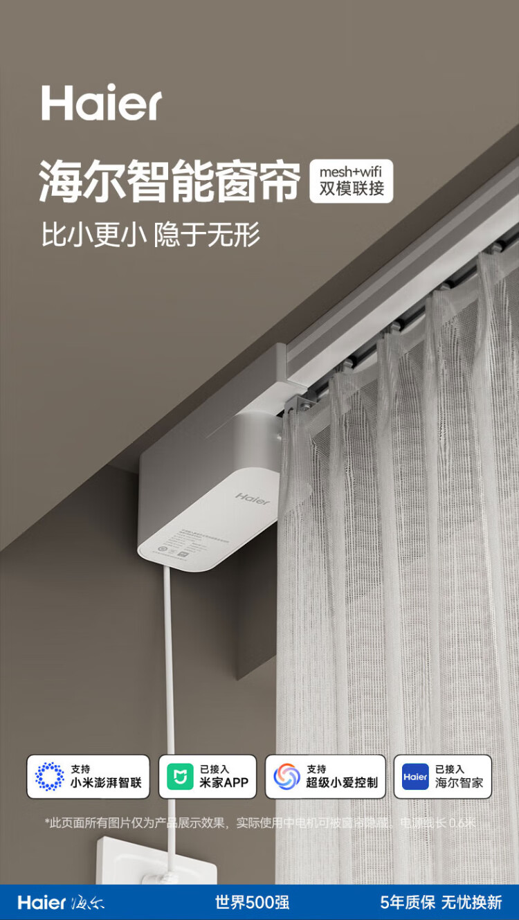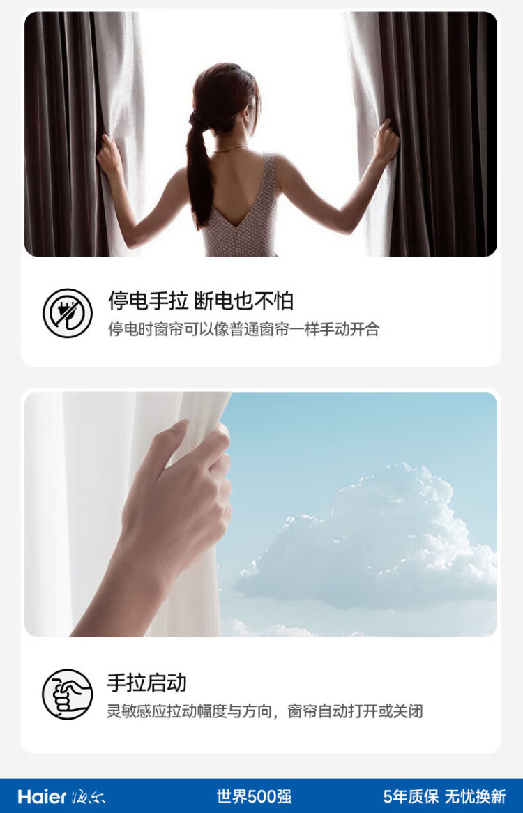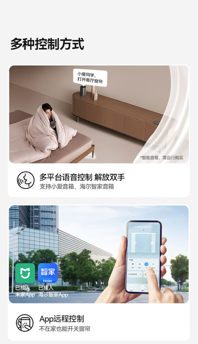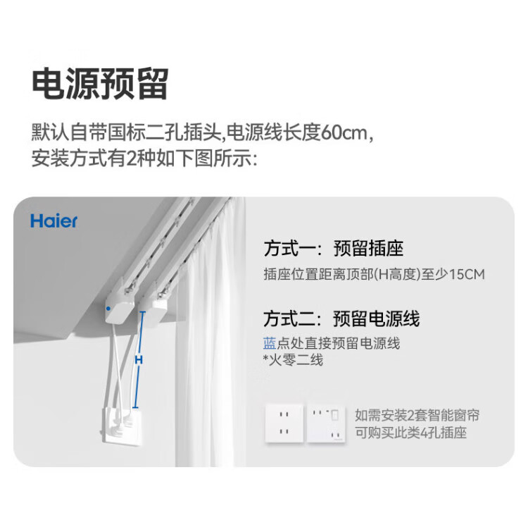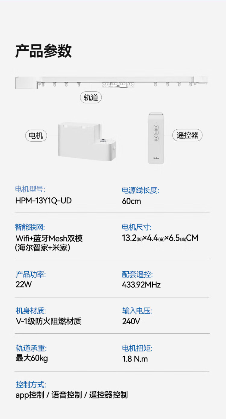 Haier electric curtains intelligent fully automatic customized silent track remote control voice hidden motor can be customized double track straight track within 2.5 meters door installation (1 set) 1 motor + 1 track
