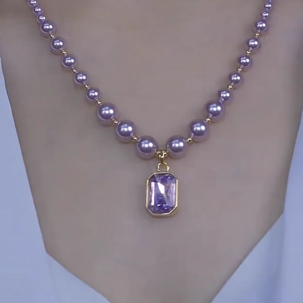 Ai Murphy's new purple shell bead necklace, simple and elegant, niche clavicle chain, versatile sweater chain, atmospheric and fashionable pendant, square purple shell bead necklace
