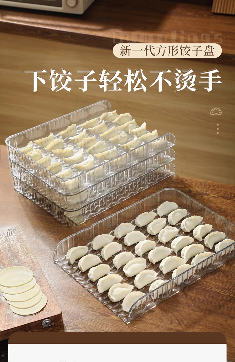 Detif PET dumpling tray, household dumpling placement tray, transparent non-stick rectangular dumpling tray, kitchen dumpling curtain cover, non-slip, non-stick bottom (1 premium dumpling curtain)