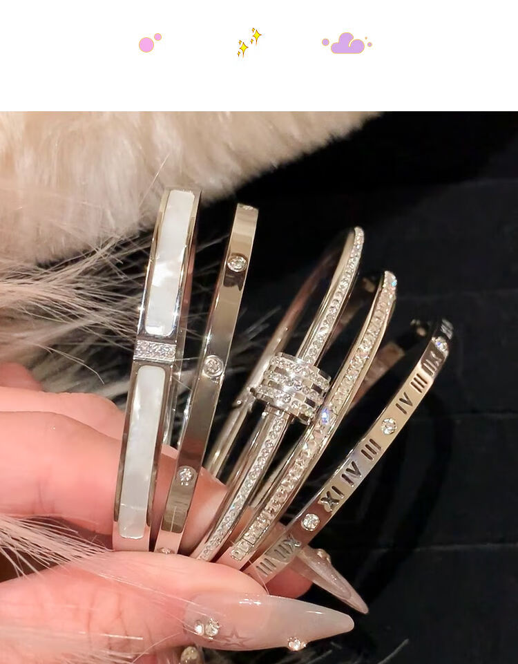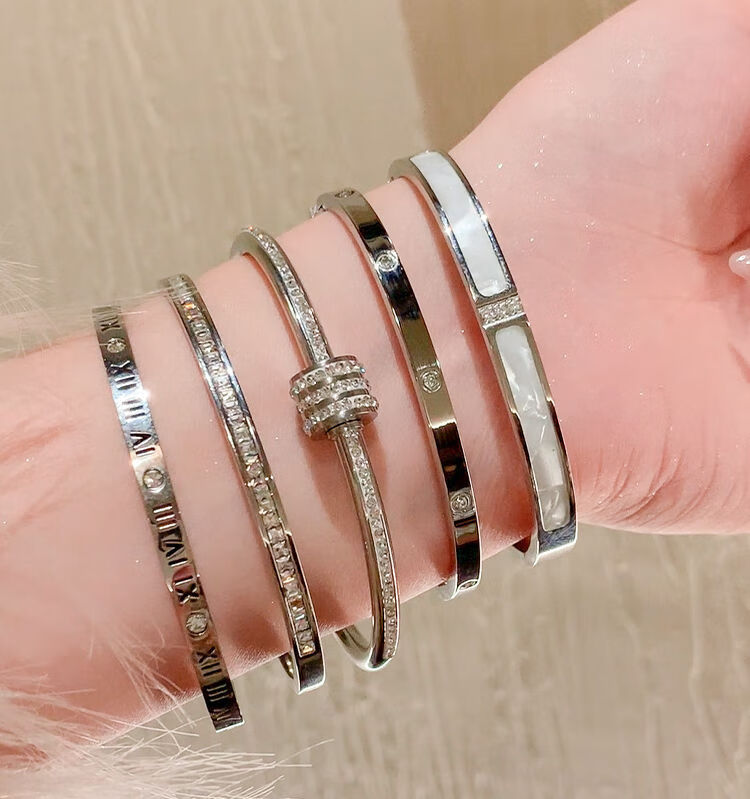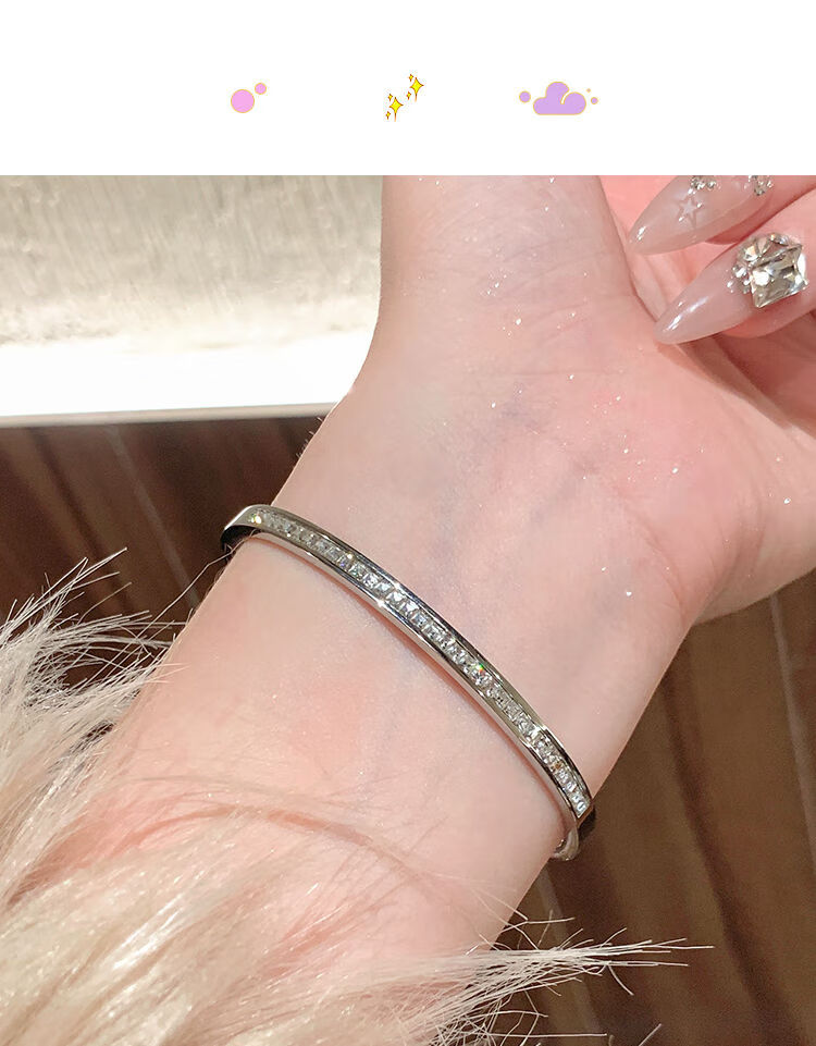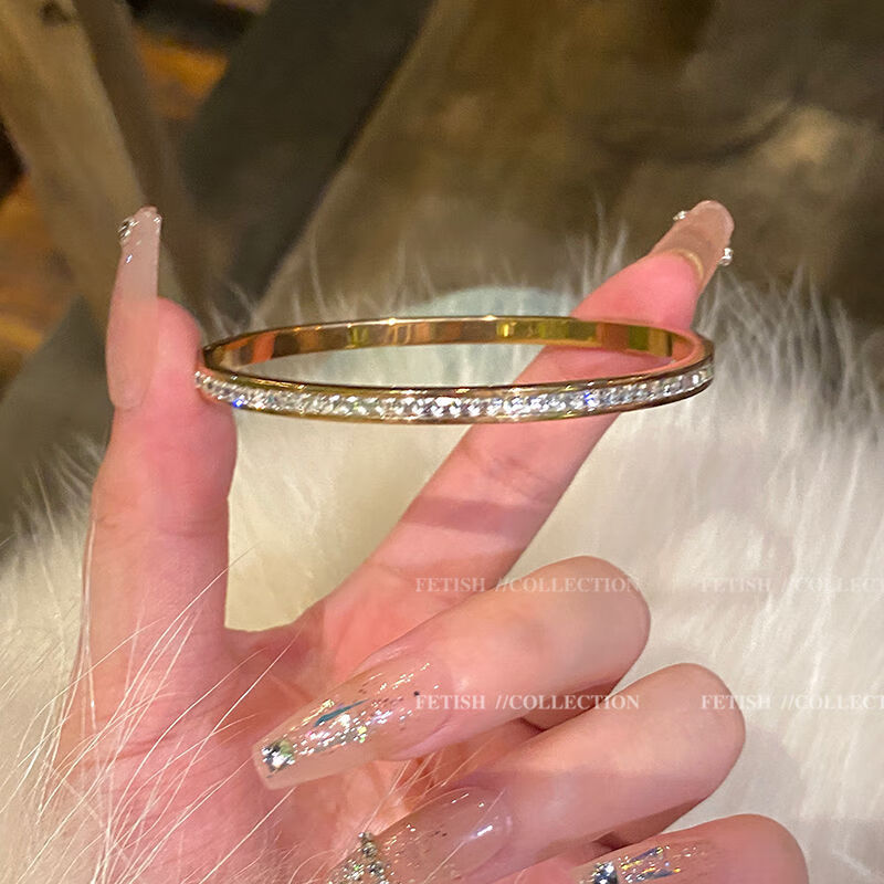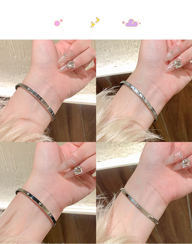 Muqian titanium steel does not fade, light luxury, high-end, full diamond bracelet, women's bracelet, Roman numerals, small waist, simple gypsophila full diamond bracelet, gold - titanium steel, diameter about 5.9cm, inner diameter 5cm