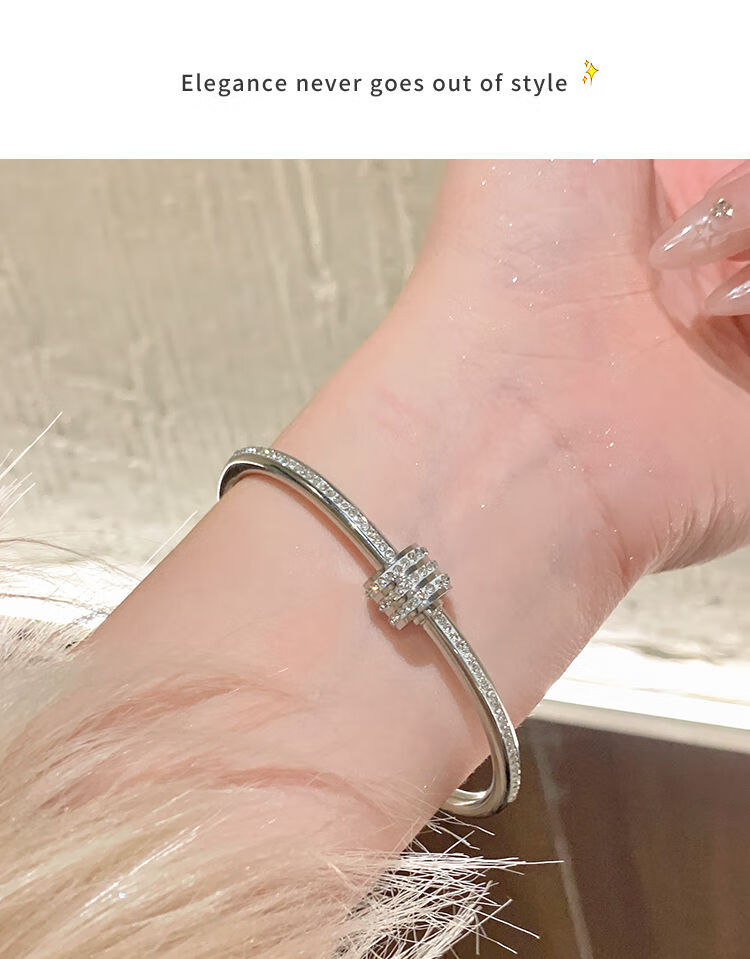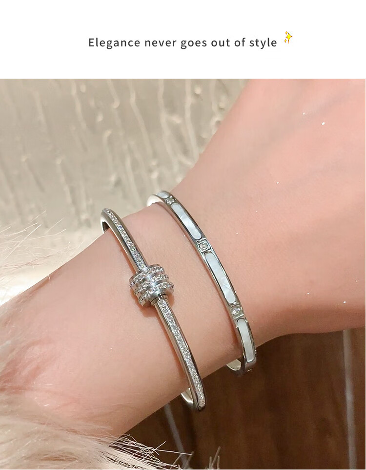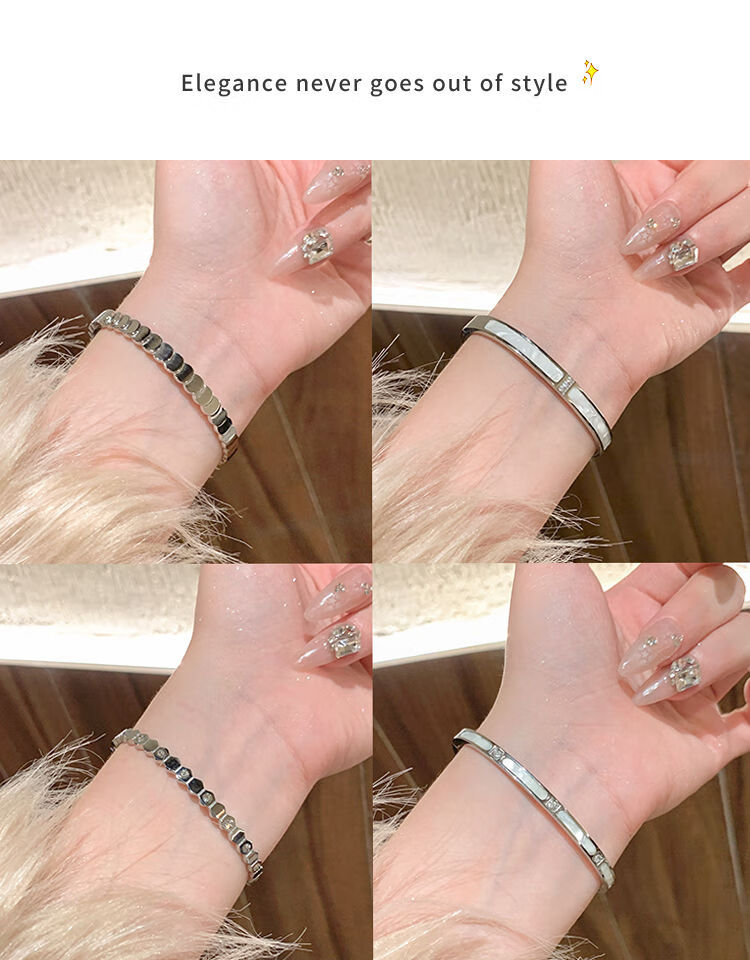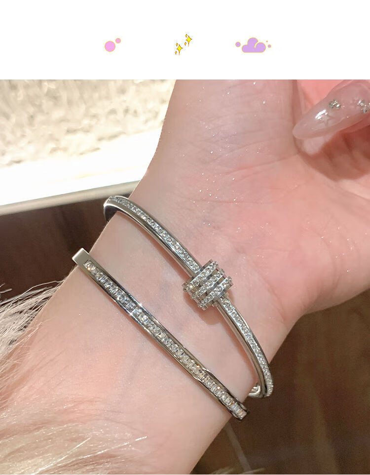 Muqian titanium steel does not fade, light luxury, high-end, full diamond bracelet, women's bracelet, Roman numerals, small waist, simple gypsophila full diamond bracelet, gold - titanium steel, diameter about 5.9cm, inner diameter 5cm