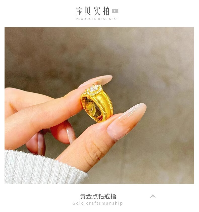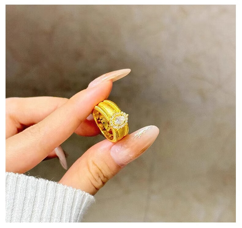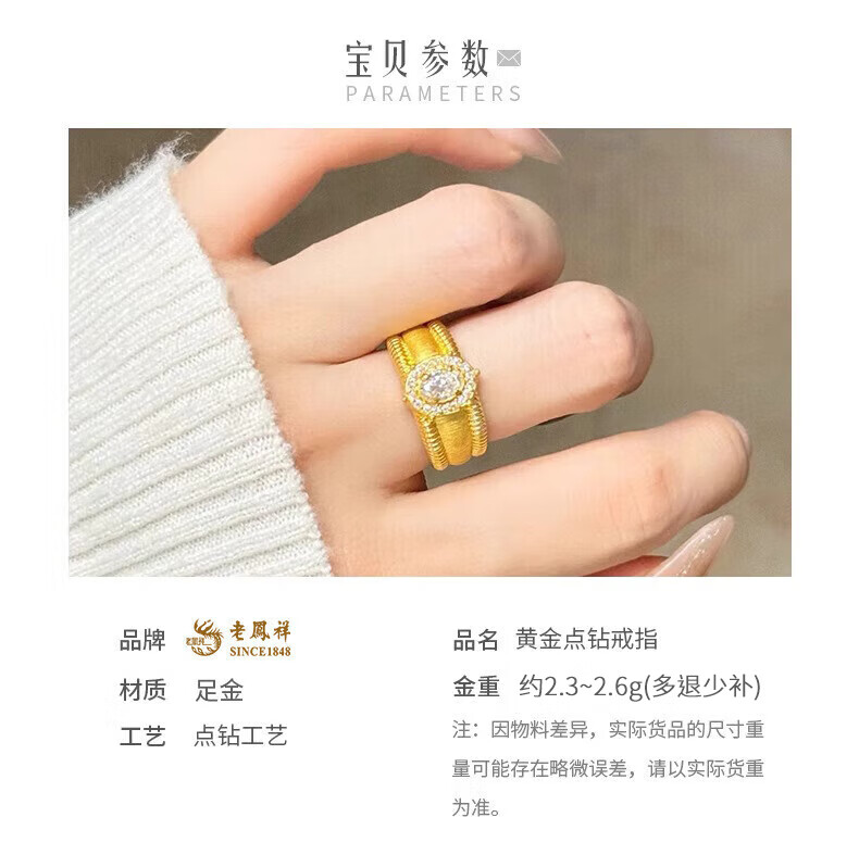 Lao Fengxiang gold pigeon egg ring pure gold ring retro fashion queen ring anniversary gift to girlfriend and wife birthday gift Seiko white pigeon egg gold ring about 2.3-2.5g more return less make up 17 rings