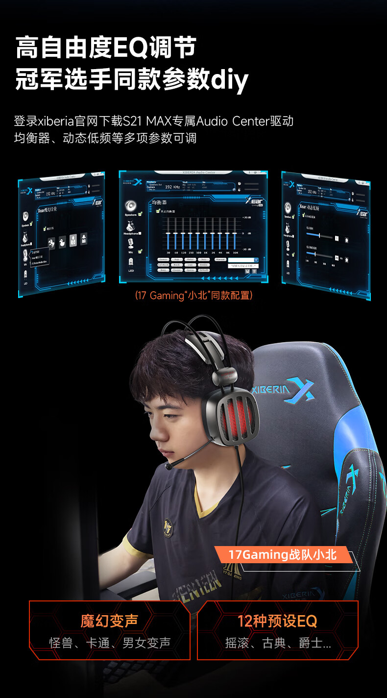 Siberia (XIBERIA) S21 computer head-mounted e-sports game headset anchor does not ask for help to listen to the sound and identify the position of PlayerUnknown's Battlegrounds wired headset with microphone S21MAX iron gray 6646x1 dual sound card intelligent control