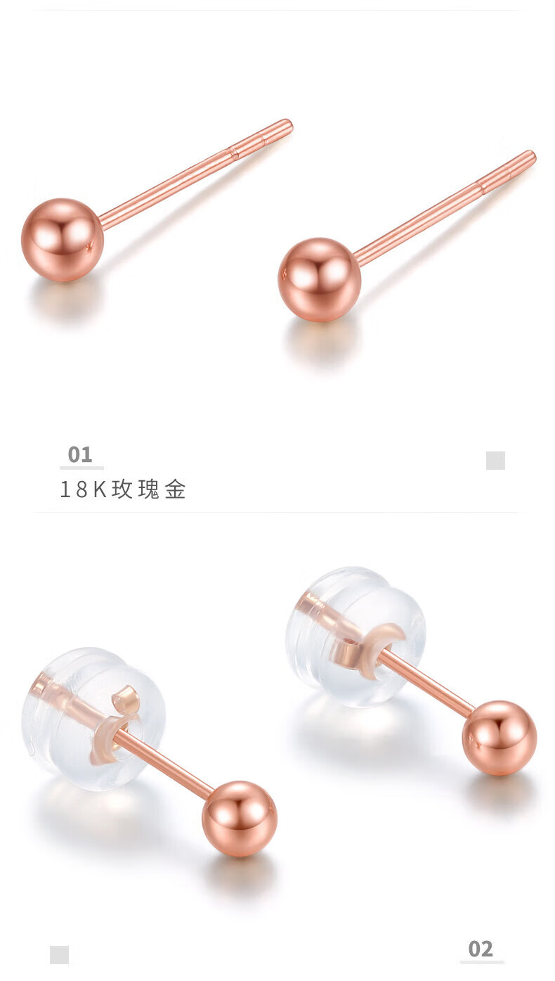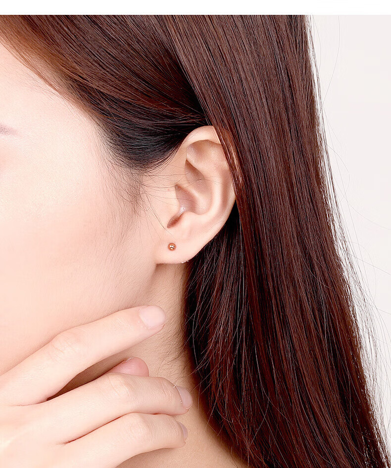 CHINA GOLD 18K gold pearl earrings for women, new versatile round bead straight needle earrings, Valentine's Day birthday gift for girlfriend, delivery today/next day 18K gold pearl earrings-3mm, about 0.1g