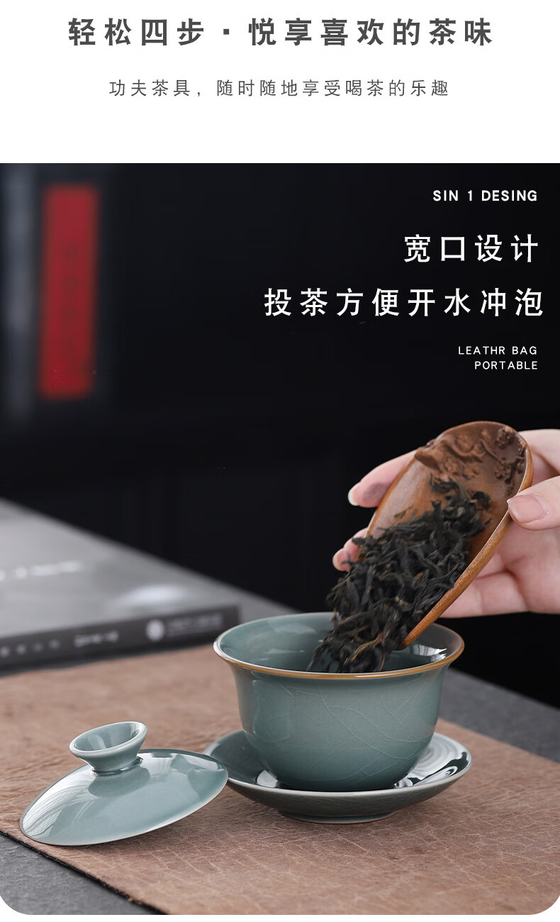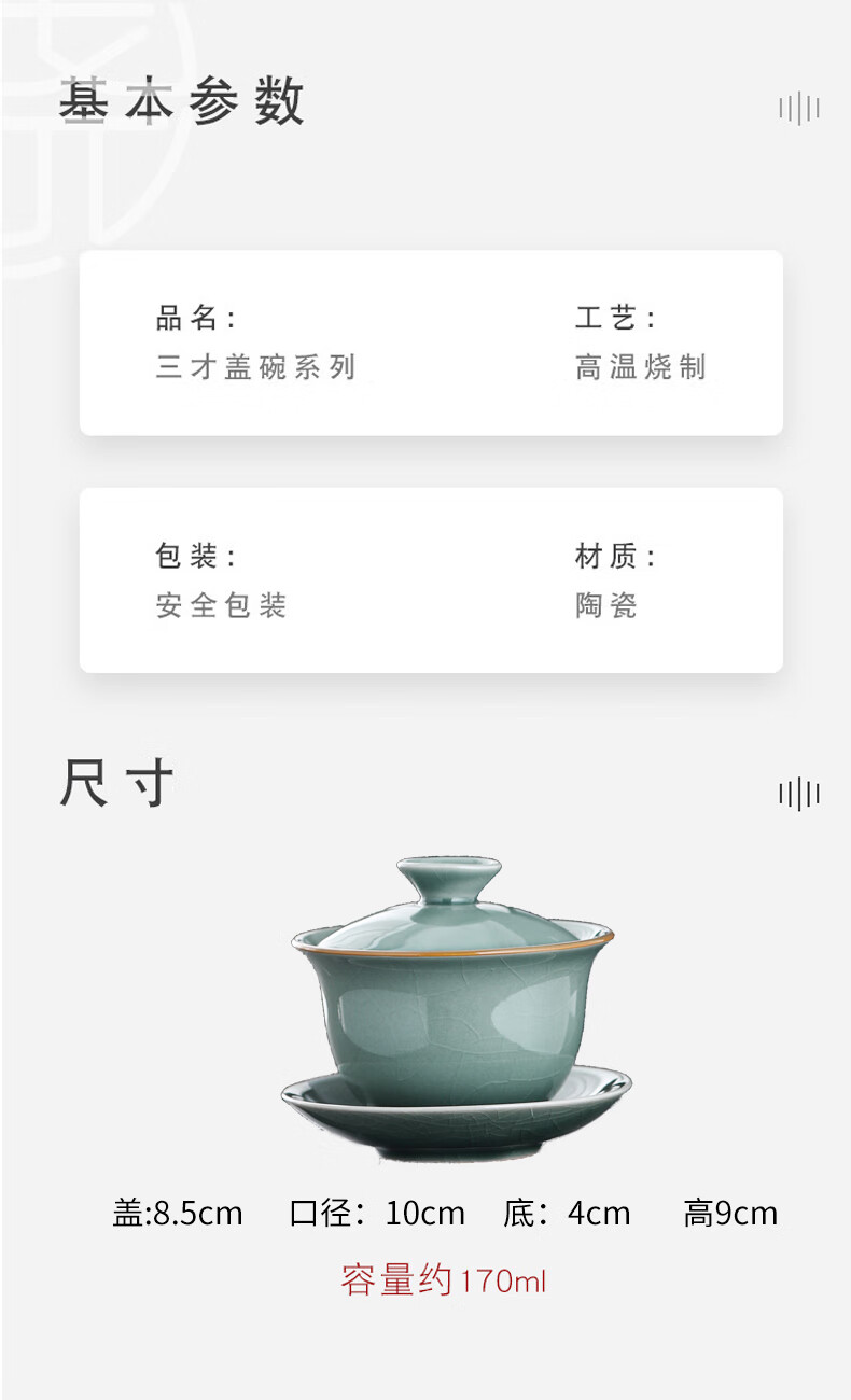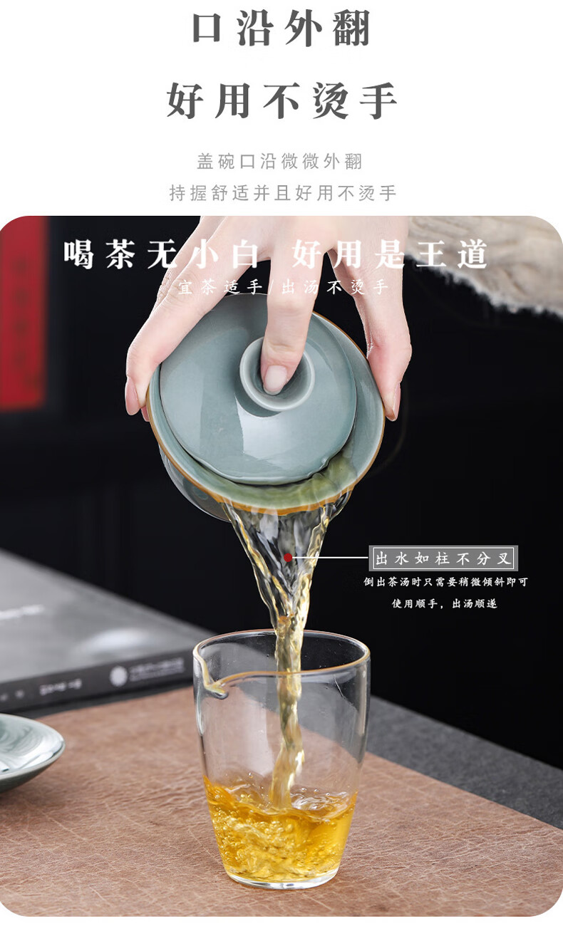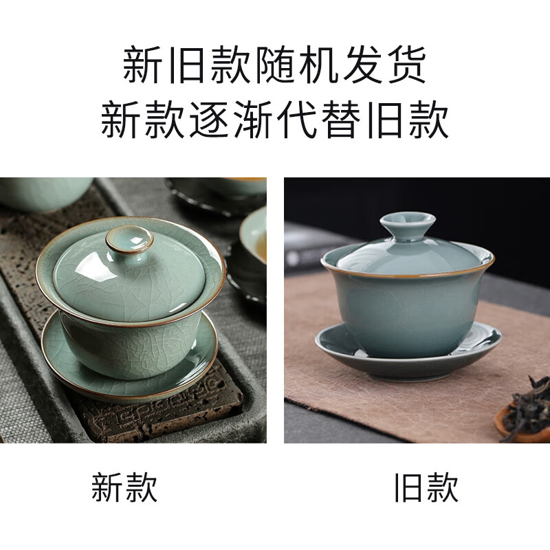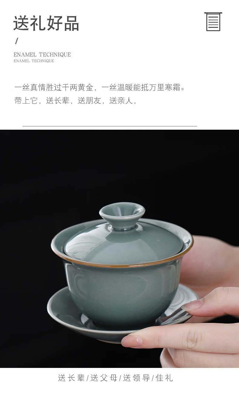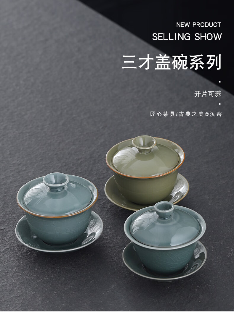 Yunshun Dehua Ge Kiln Sancai Covered Bowl Ice-cracked Tea Bowl Single Tea Brewing Kung Fu Tea Set Household Ceramic Tea Cup Ge Kiln Covered Bowl-Tianqing 170ml