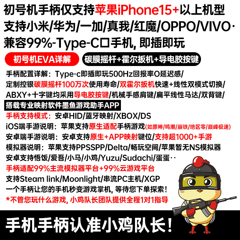 Captain Chicken King's Glory Artifact One-click combo to instantly change the look of the Explorer EX-1S stretch handle mobile game peripherals Android universal Bluetooth dual Hall rocker mechanical buttons No. 1 machine C port direct connection carbon film rocker + Hall trigger + conductive rubber button