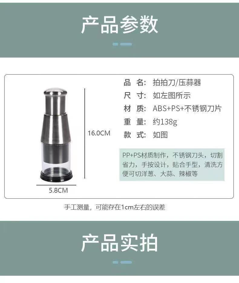 Garlic press artifact 304 stainless steel garlic pounder, extra thick, new kitchen multi-function pat knife, three seconds to make garlic paste, pat knife, onion/ginger/garlic/pepper, cooking assistant