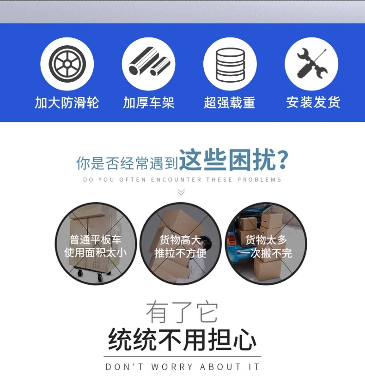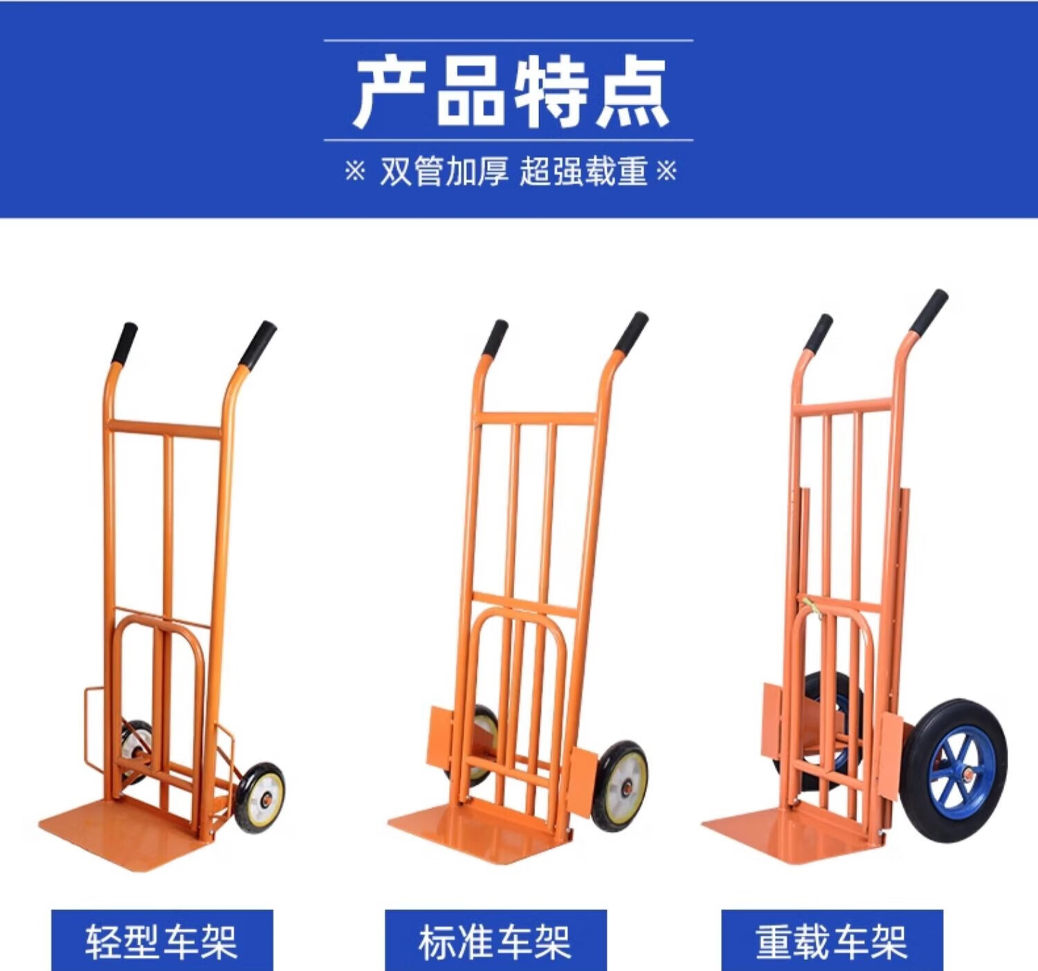 Lishi trolley, extra thick transport cart, cargo trolley, pull truck, two-wheeled tiger car trailer, folding load-bearing wheel, durable heavy-duty model with solid wheel and large wheel 32 cm