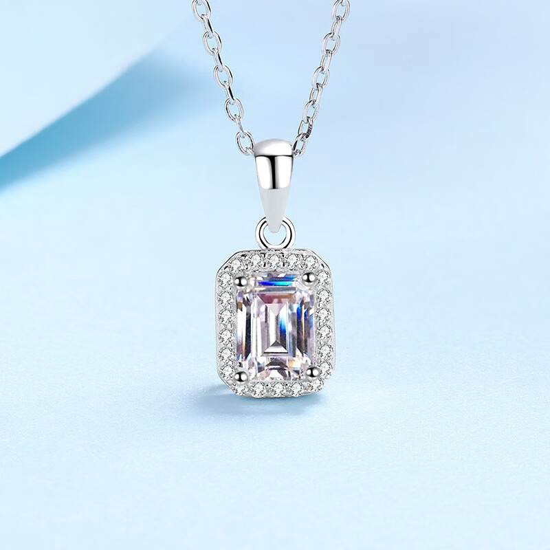 Platinum diamond chain new pendant for women fully set with rectangular moissanite pt95 1 carat 5x7M single pendant without chain