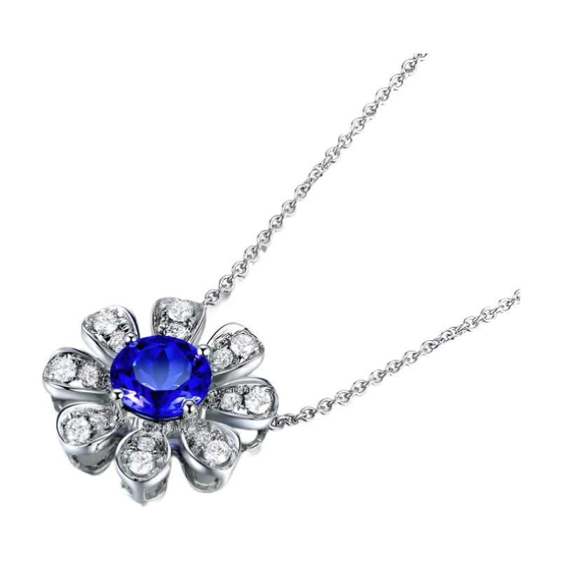 COASZE Tanzanite Necklace 18k Gold Inlaid Diamond Colored Gemstone Necklace for Wife and Girlfriend Tanzanite Necklace