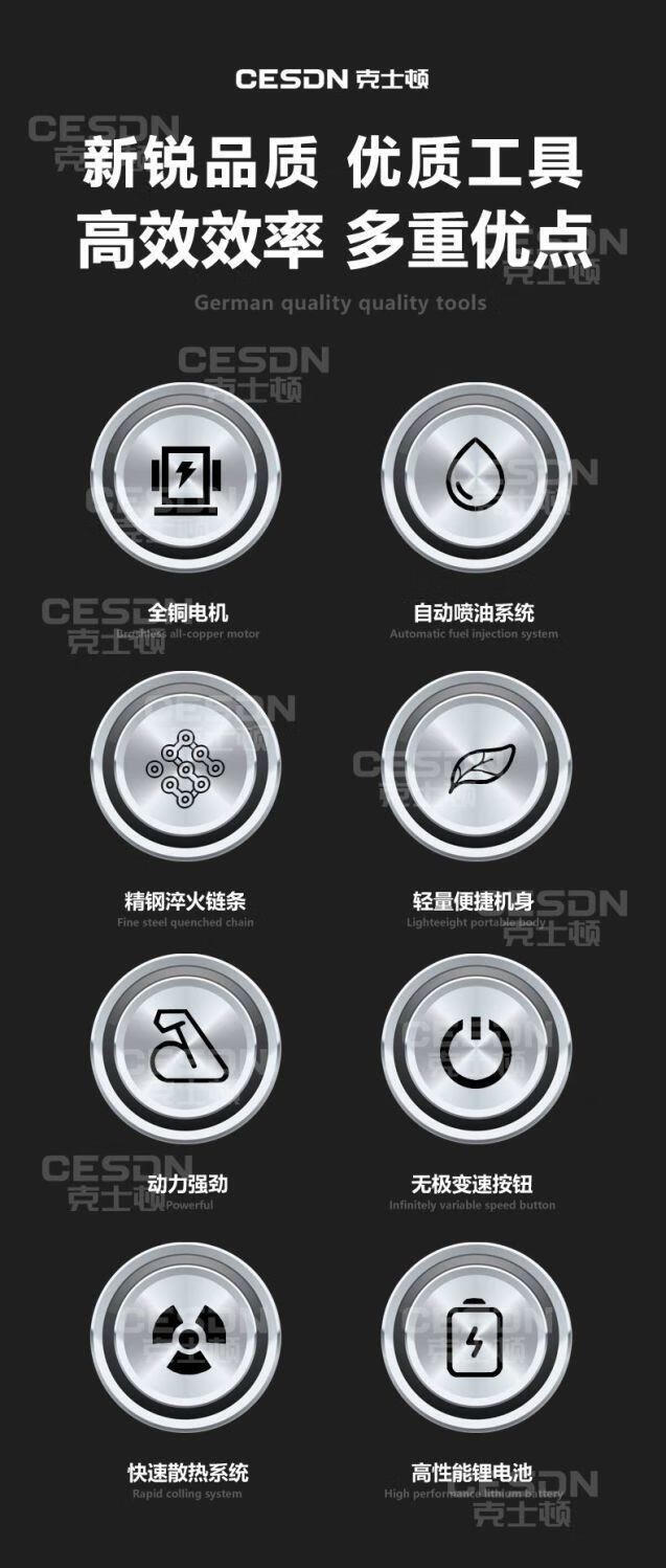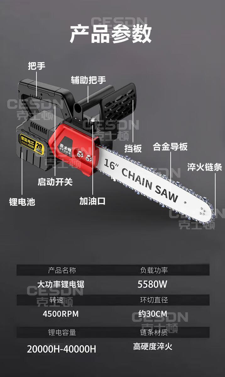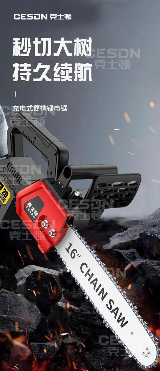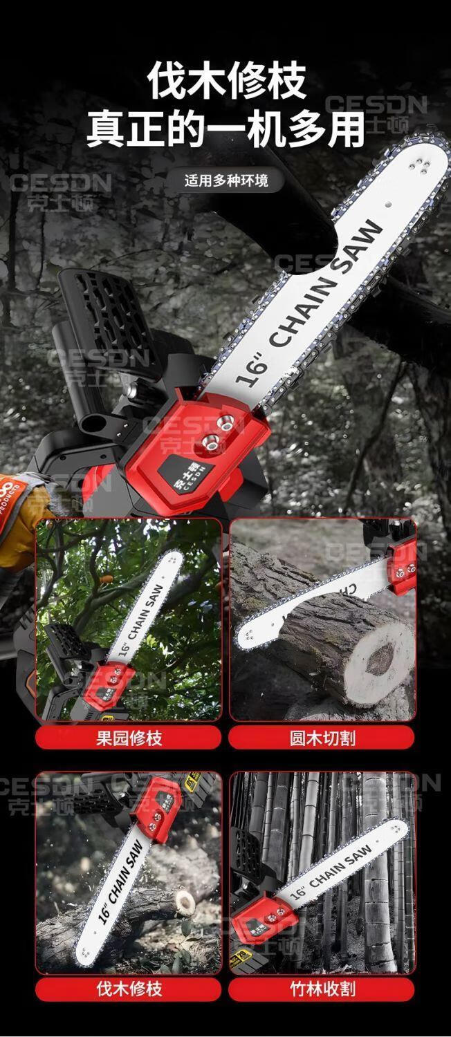 Kerston German lithium chainsaw rechargeable high-power electric chain saw small multi-functional household outdoor sawing tree felling wood saw with 15 batteries alone