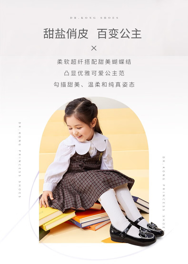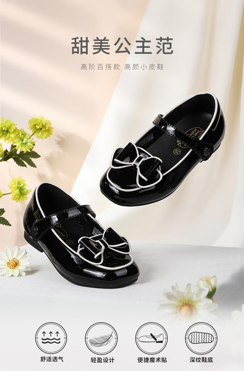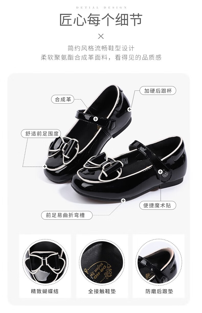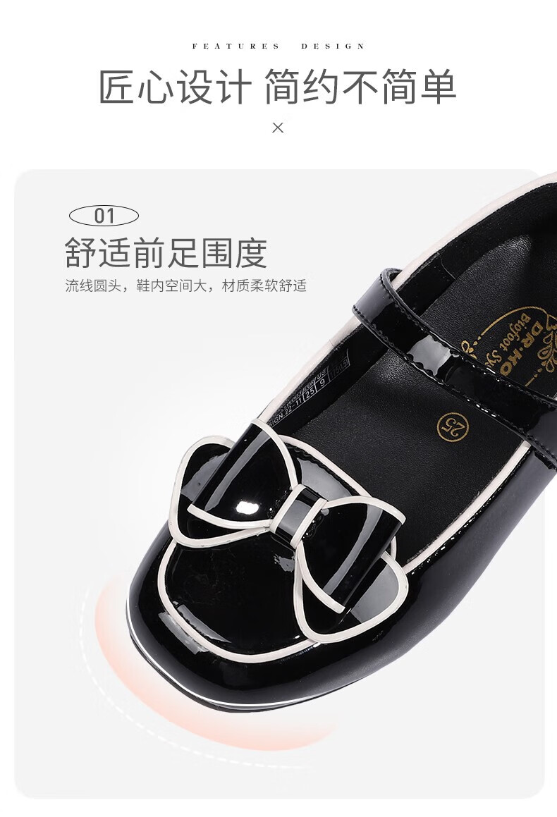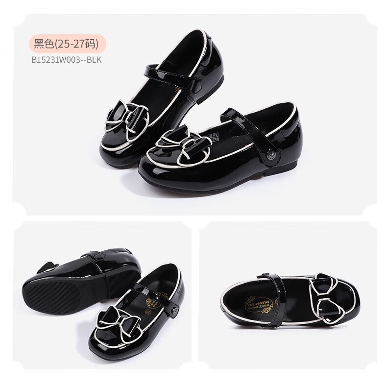 Dr. Kong (DR KONG) Spring and Autumn Soft Soled Ceremony Shoes with Velcro British Style Princess Shoes for Performance Girls Black Leather Shoes Black 25 Suitable for Feet Length Approximately 15.5-16.0cm