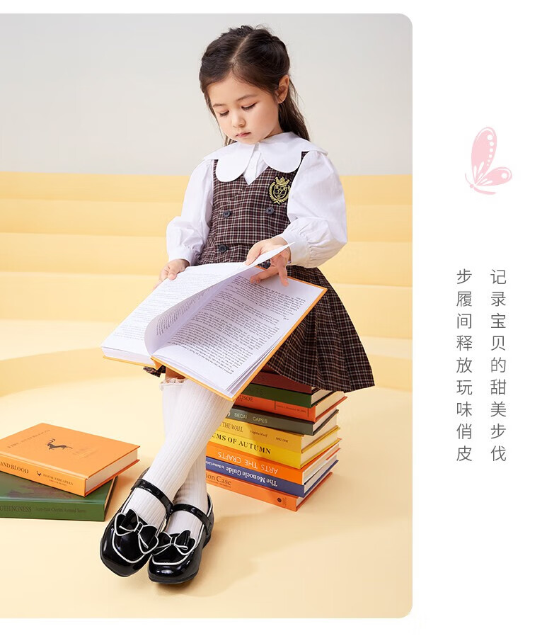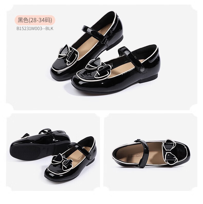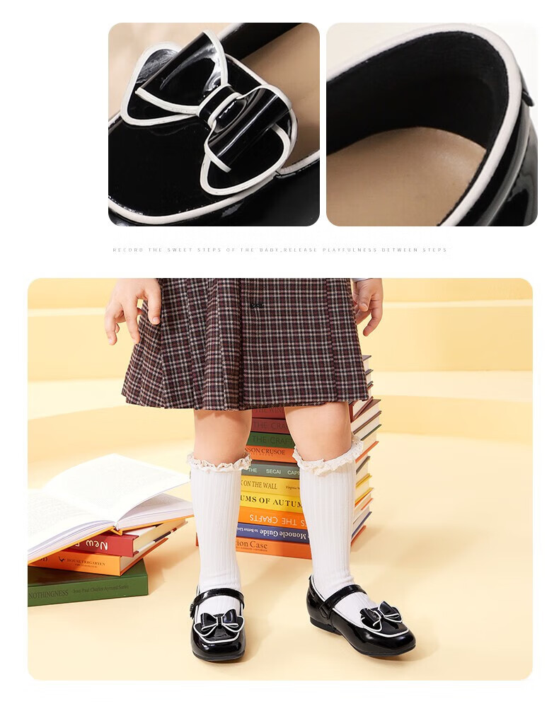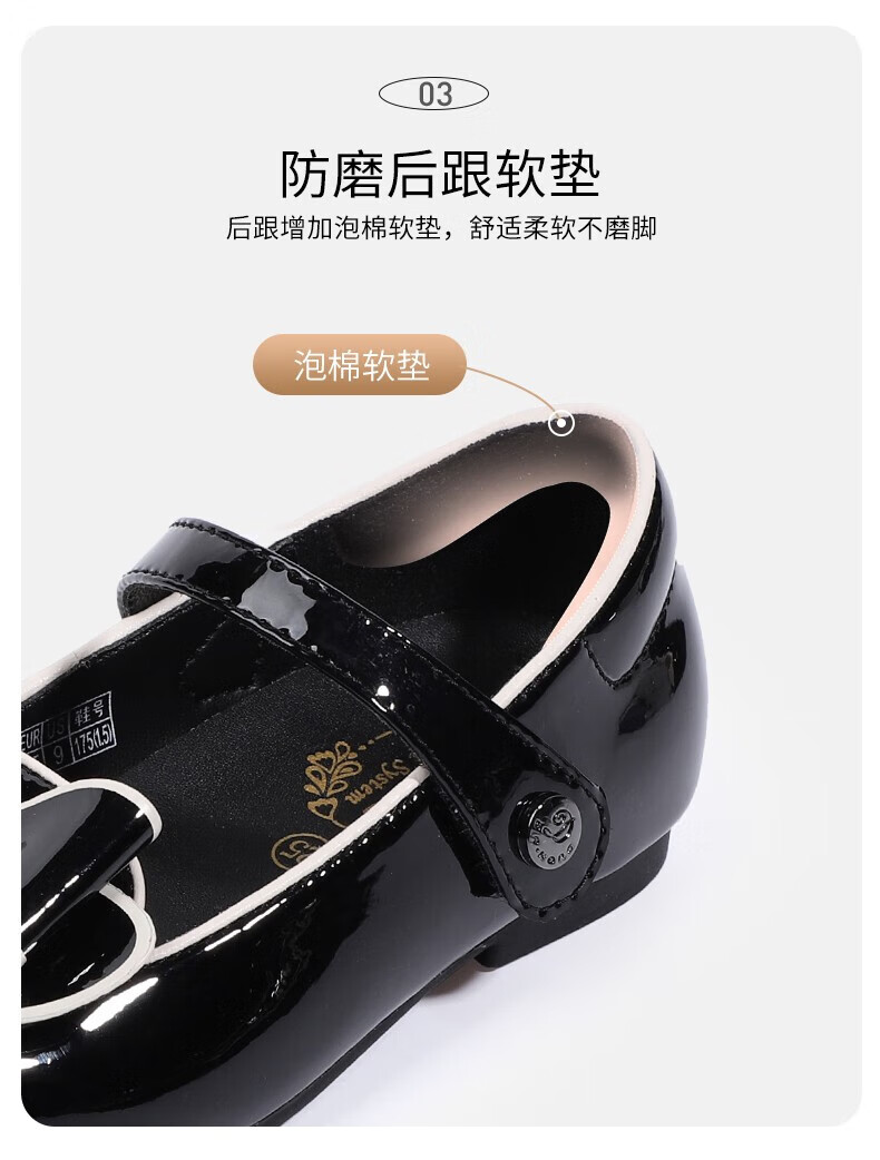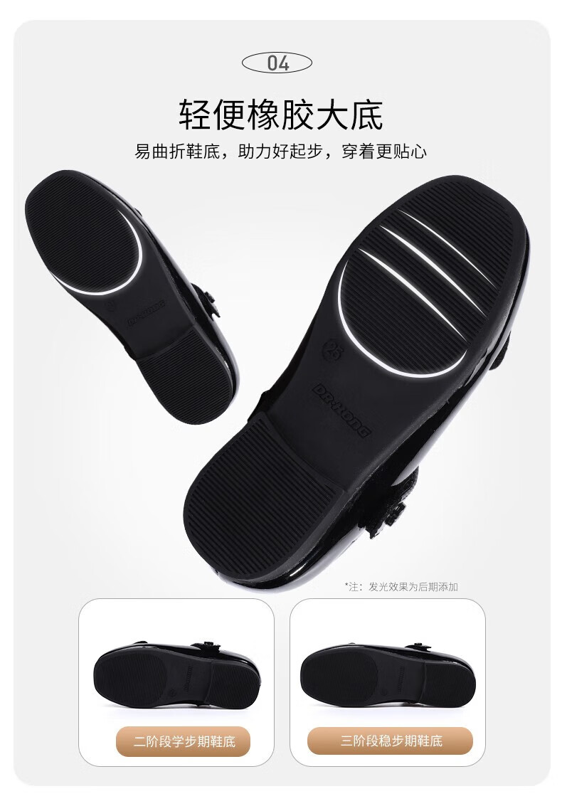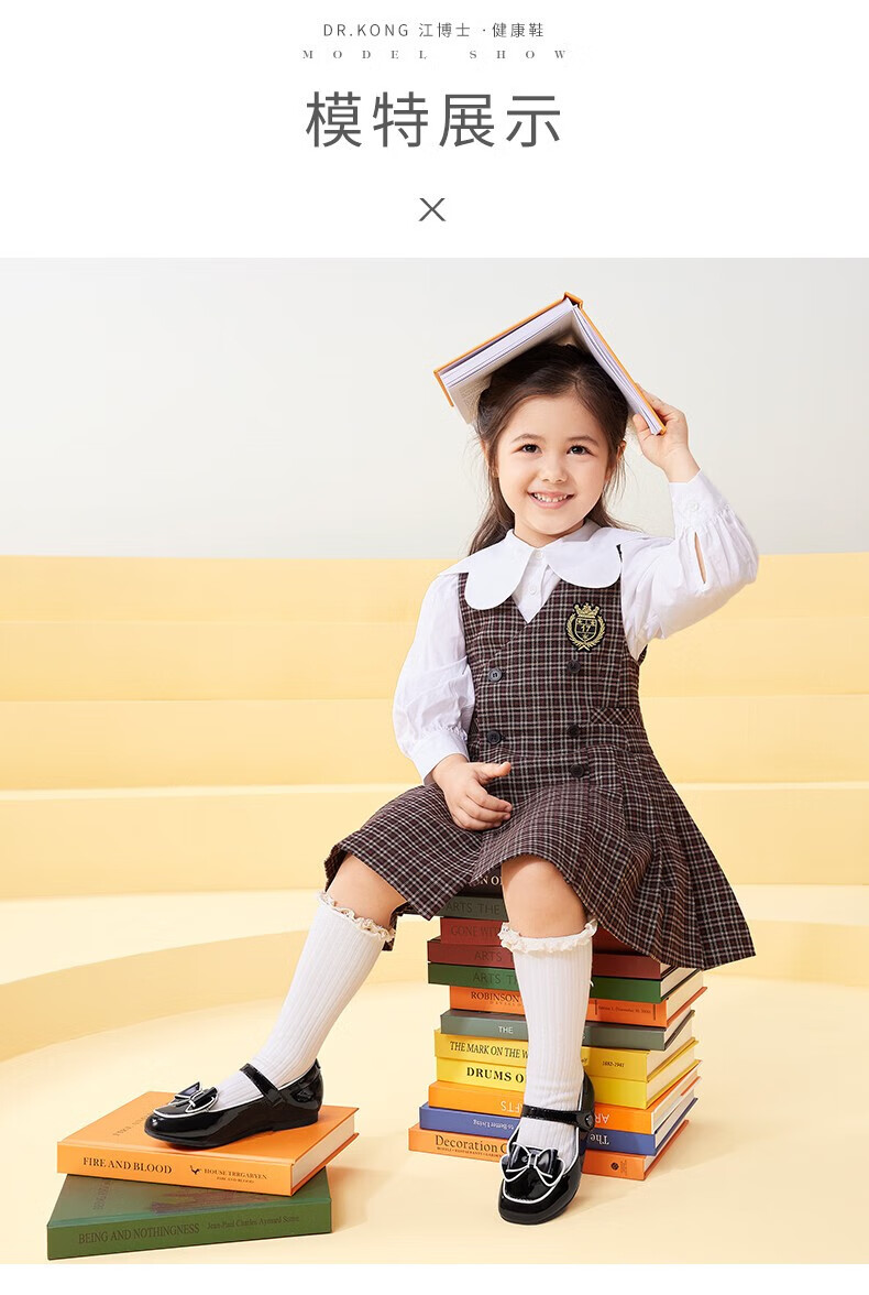 Dr. Kong (DR KONG) Spring and Autumn Soft Soled Ceremony Shoes with Velcro British Style Princess Shoes for Performance Girls Black Leather Shoes Black 25 Suitable for Feet Length Approximately 15.5-16.0cm