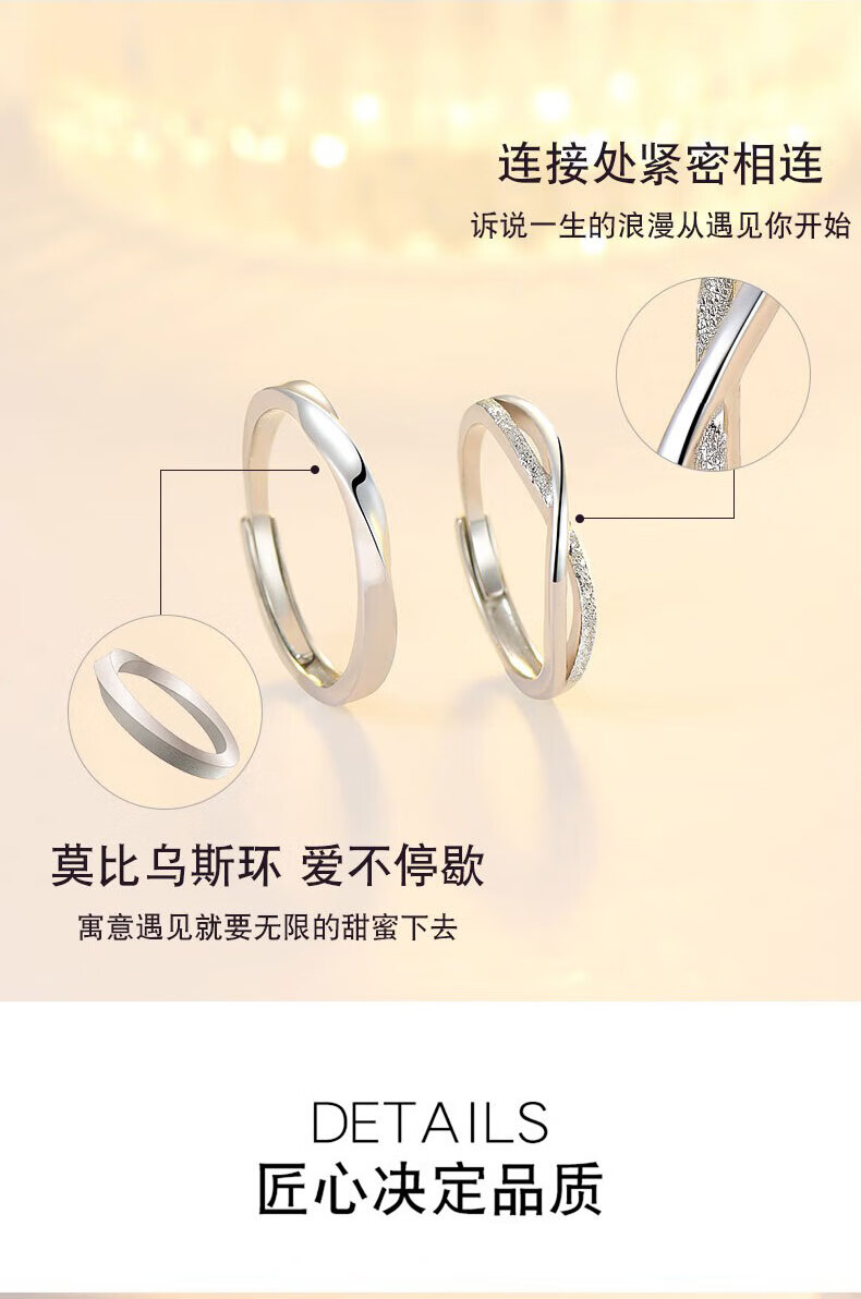 CHINA GOLD solid silver Möbius ring ring for men and women, versatile couple ring, Valentine's Day birthday gift for lover, Möbius ring for couple