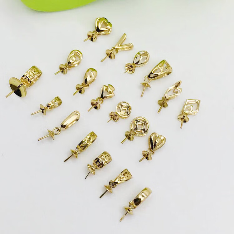 Oin 18K gold pearl pendant empty holder various plain gold inlaid pendants single jade jasper beeswax bead pendant holder gold size 13 large plate letter style