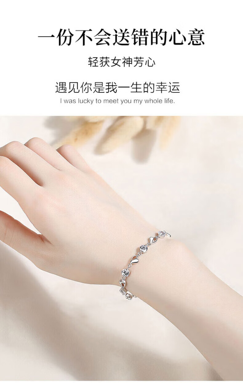 Farcoko brand pt950 platinum bracelet for women platinum moissanite single-minded fashion jewelry birthday gift for girlfriend Platinum single-minded bracelet-moissanite (full) - exquisite high-end gift box