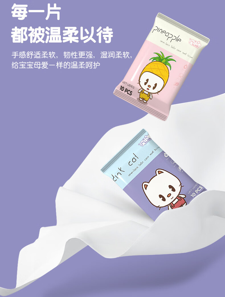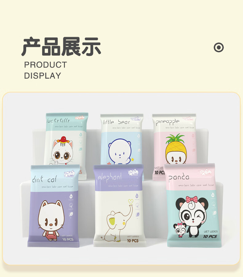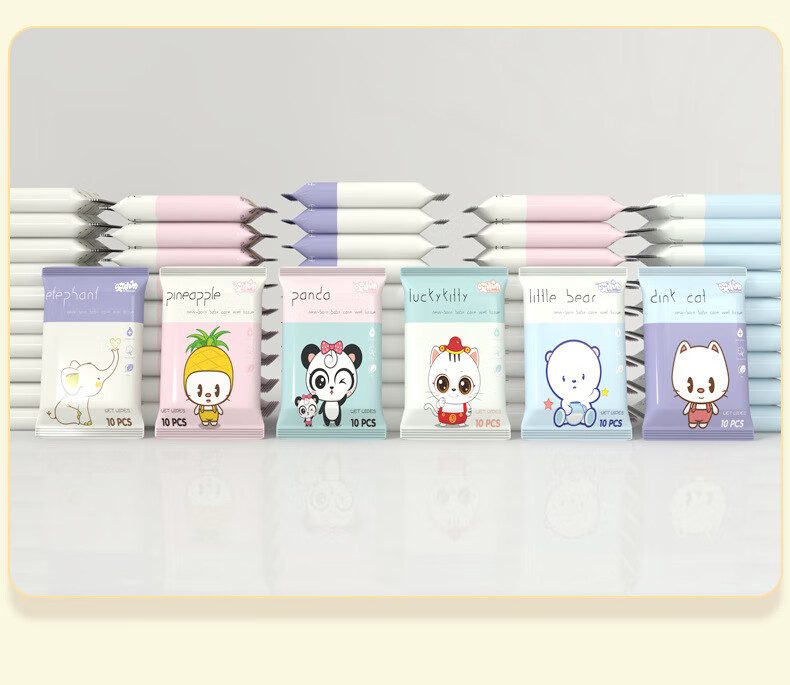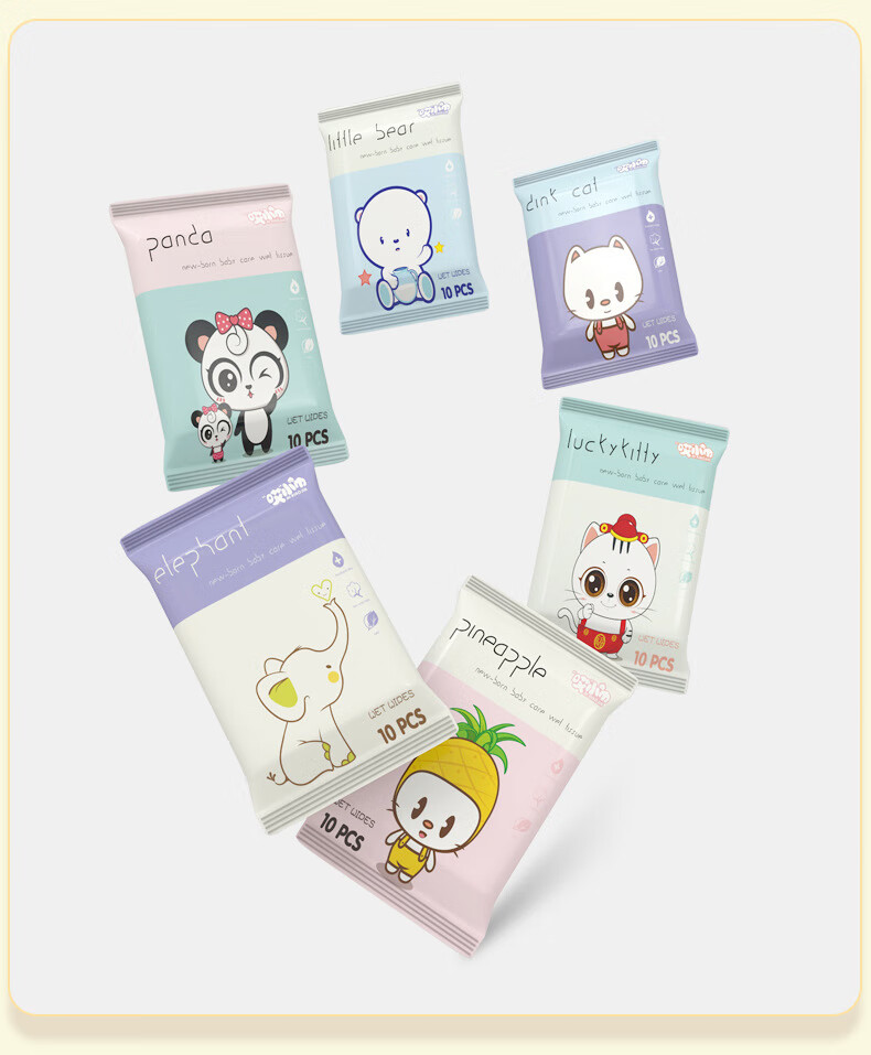 Mingchuang same style baby hand and mouth wipes portable small package hygienic sterilization children's butt wipes 1 pack of 10 mascot wipes
