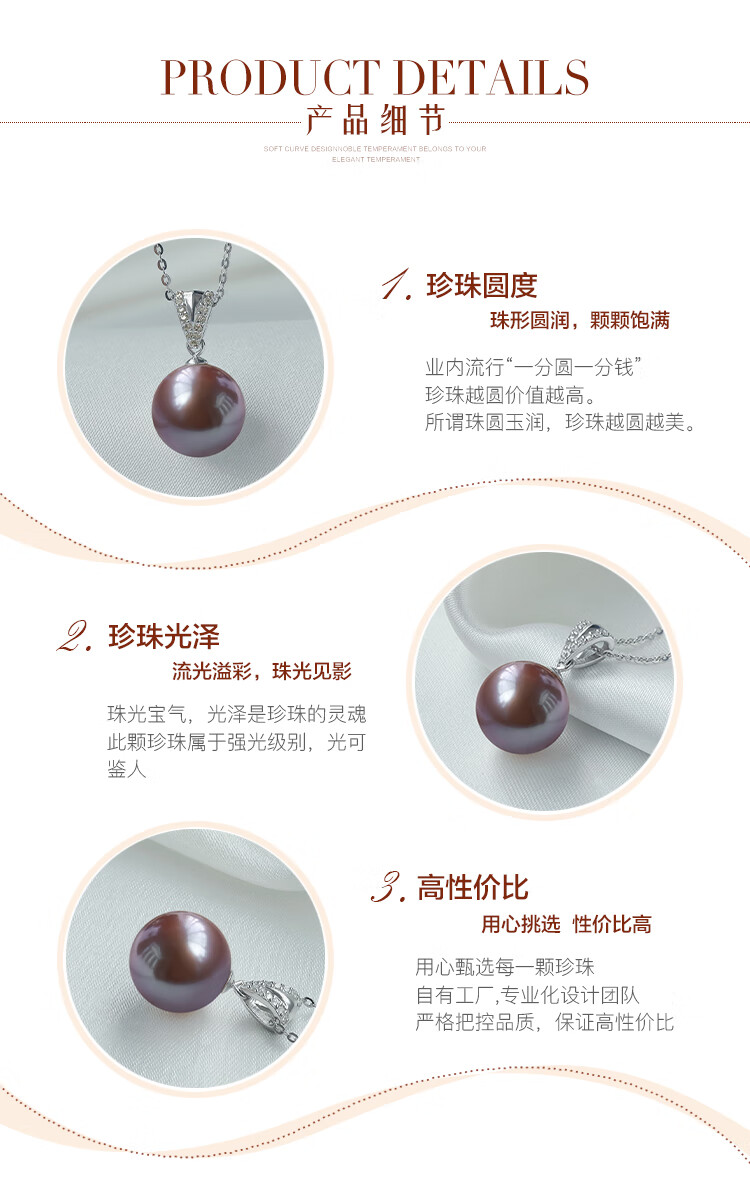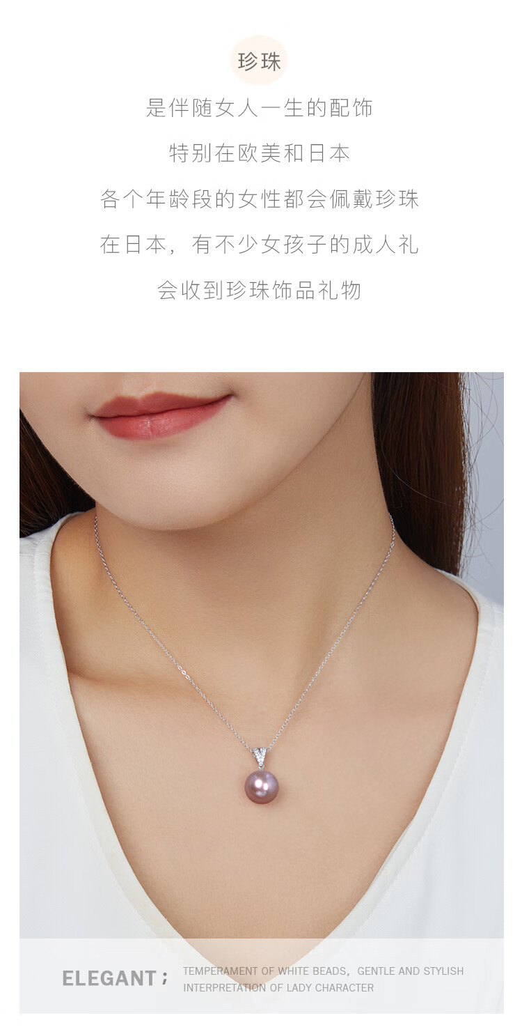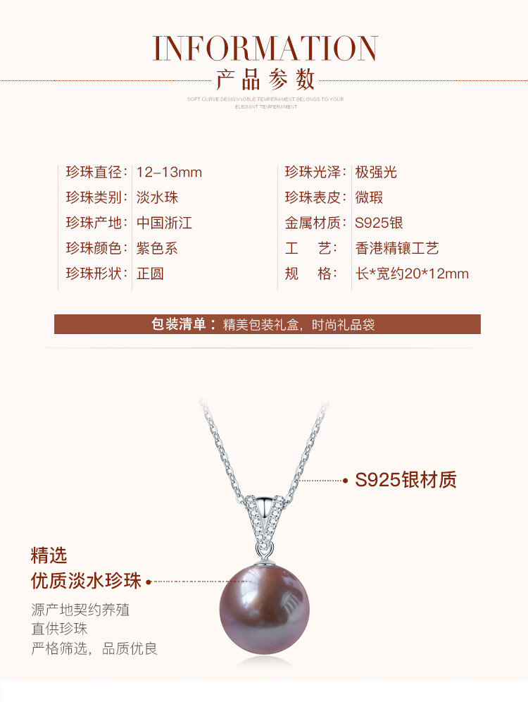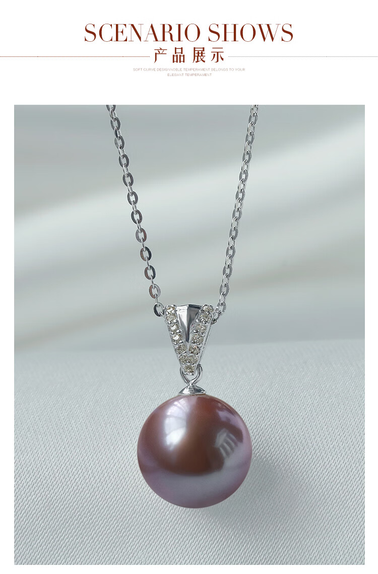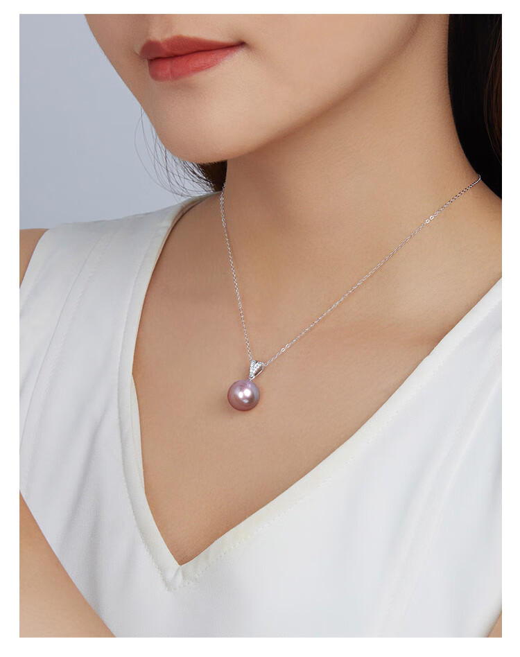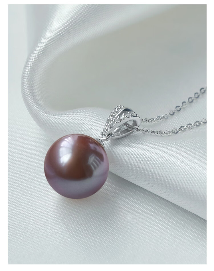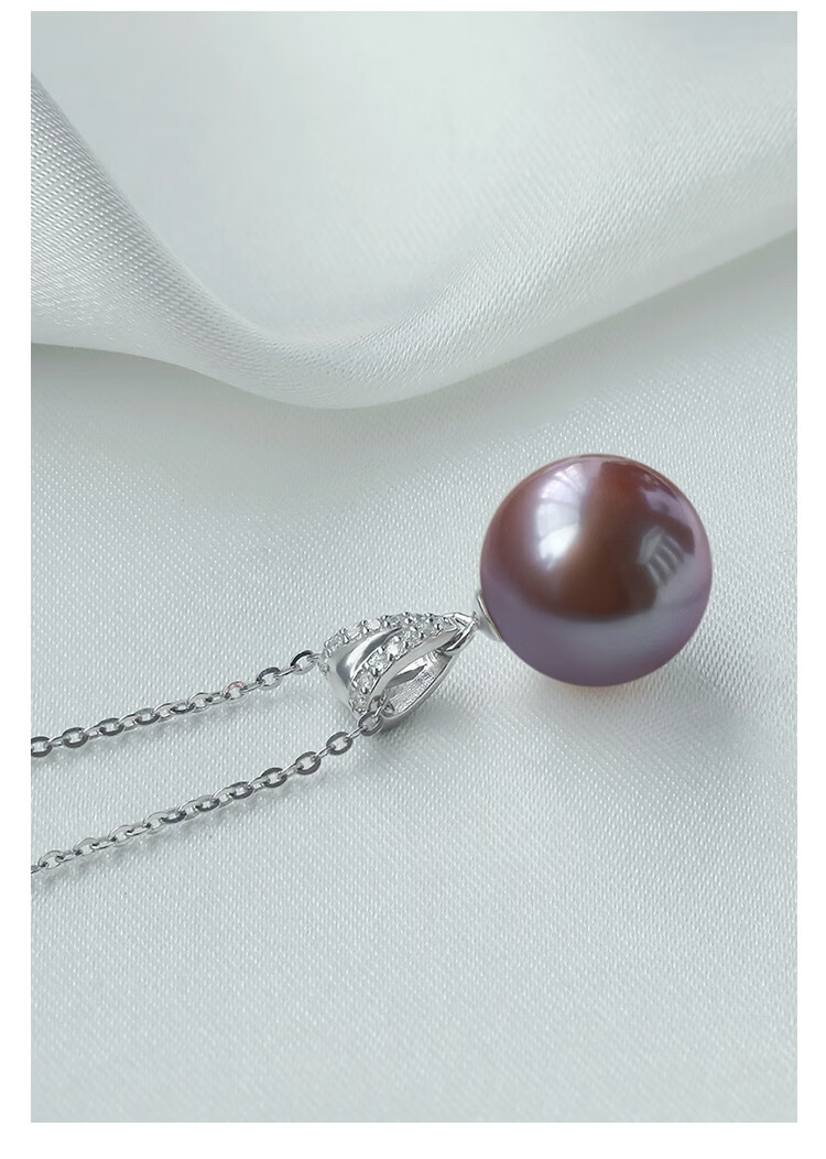 Queen of Pearls Half Summer Time 12-13mm Perfect Round Purple Pearl Pendant with Silver Chain Women's Birthday Gift