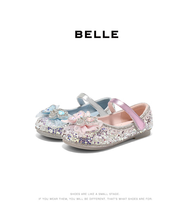 Belle (Belle) Elsa style Mary Jane shoes mall same style butterfly pumps A6090A85 pink 28