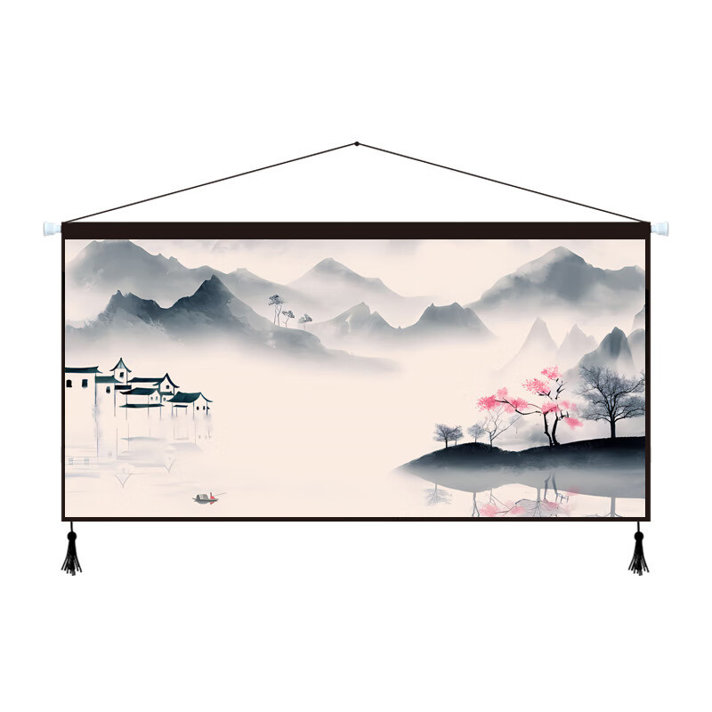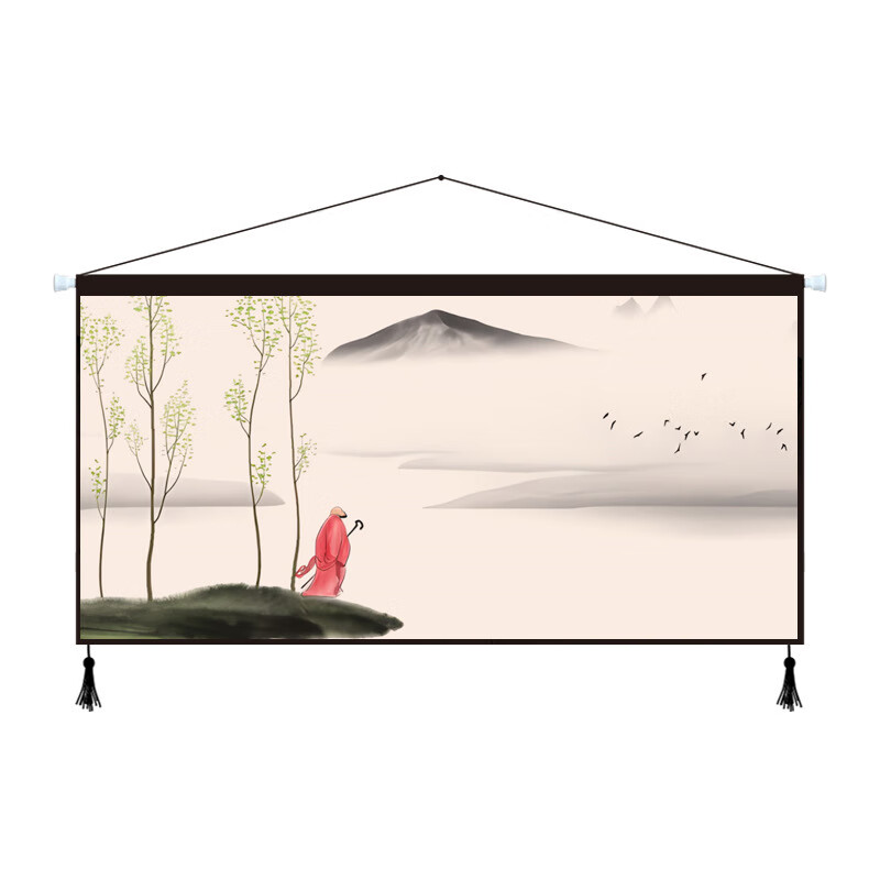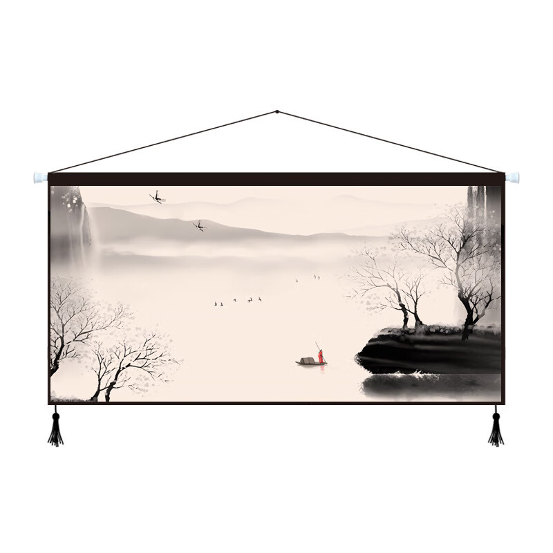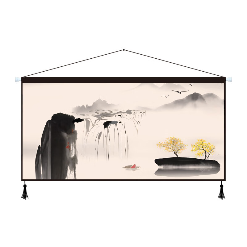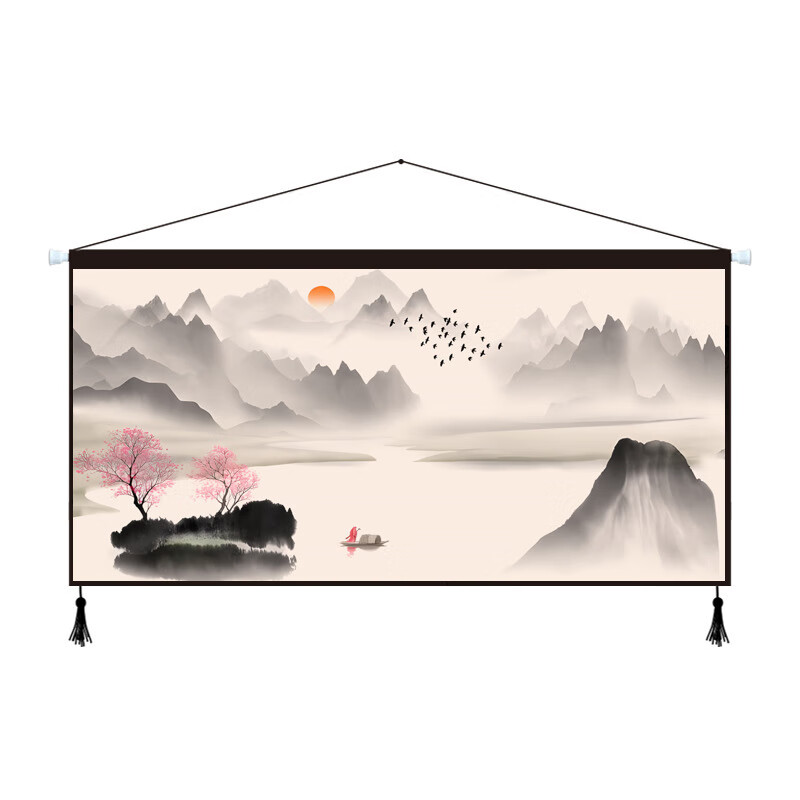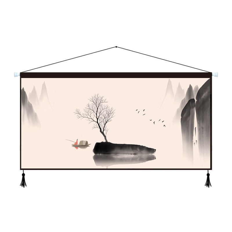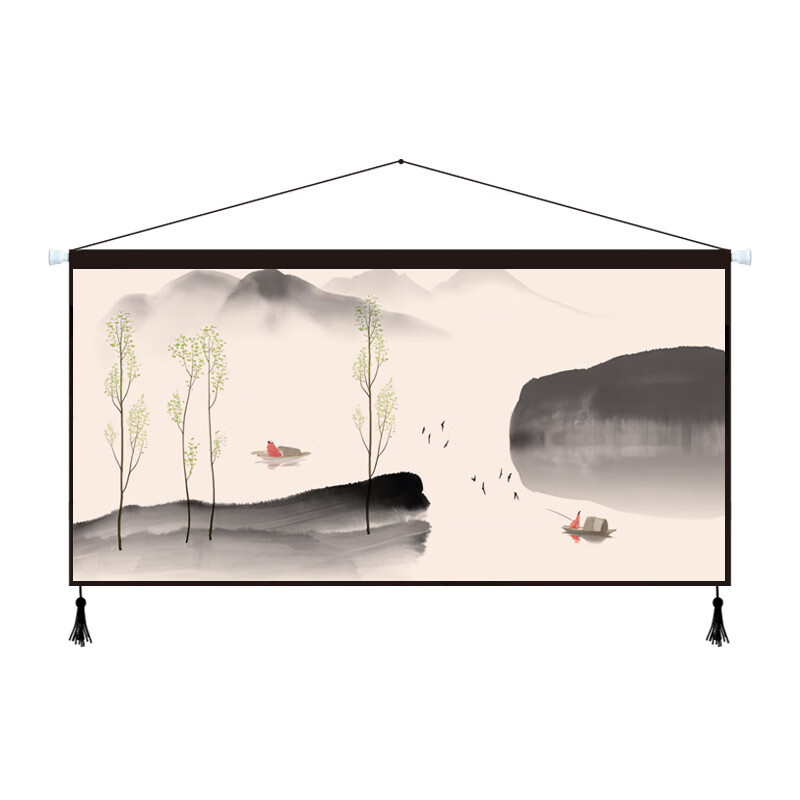 New Chinese style Zen ink landscape fabric hanging painting living room sofa background hanging cloth bedroom decoration painting restaurant tapestry 01_Zen ink painting 80cm*40cm cotton and linen 2 tassels+