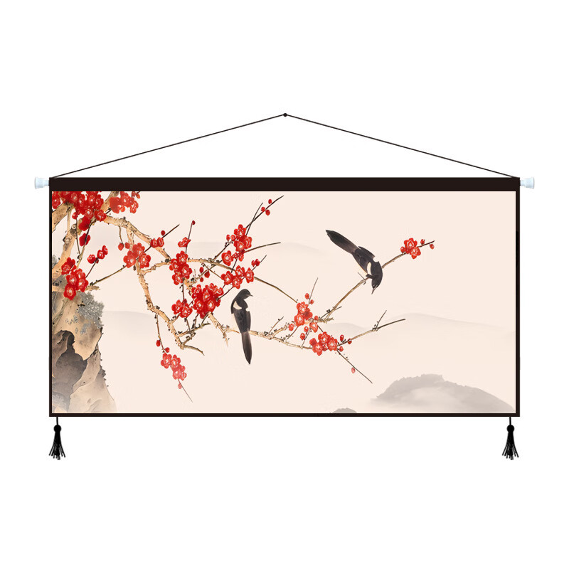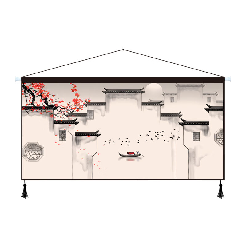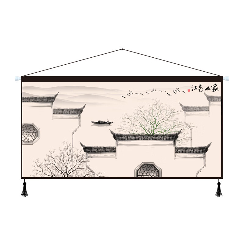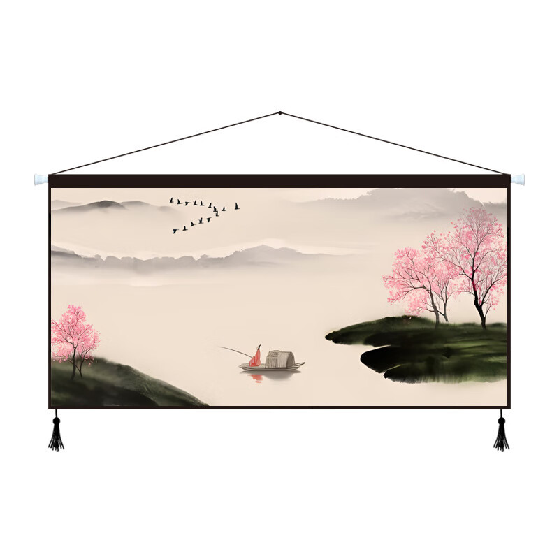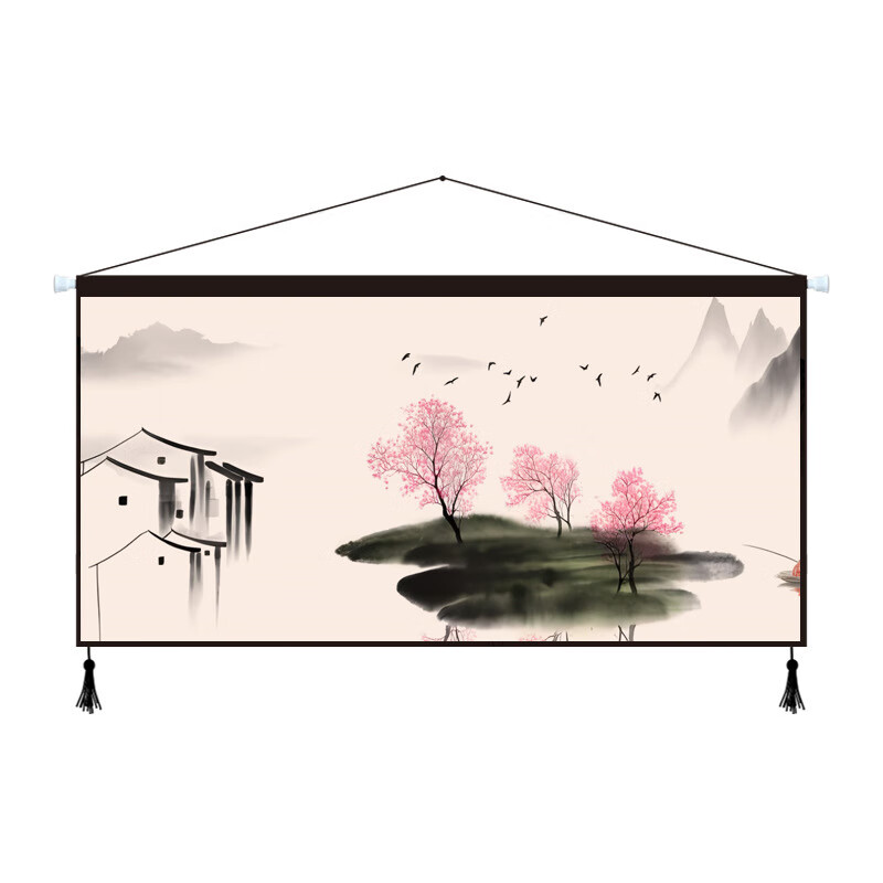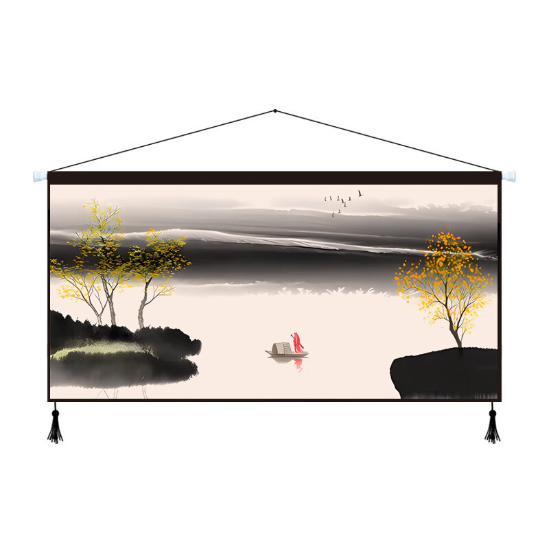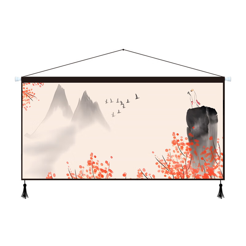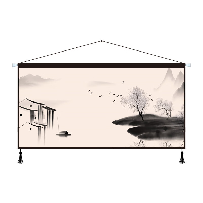 New Chinese style Zen ink landscape fabric hanging painting living room sofa background hanging cloth bedroom decoration painting restaurant tapestry 01_Zen ink painting 80cm*40cm cotton and linen 2 tassels+