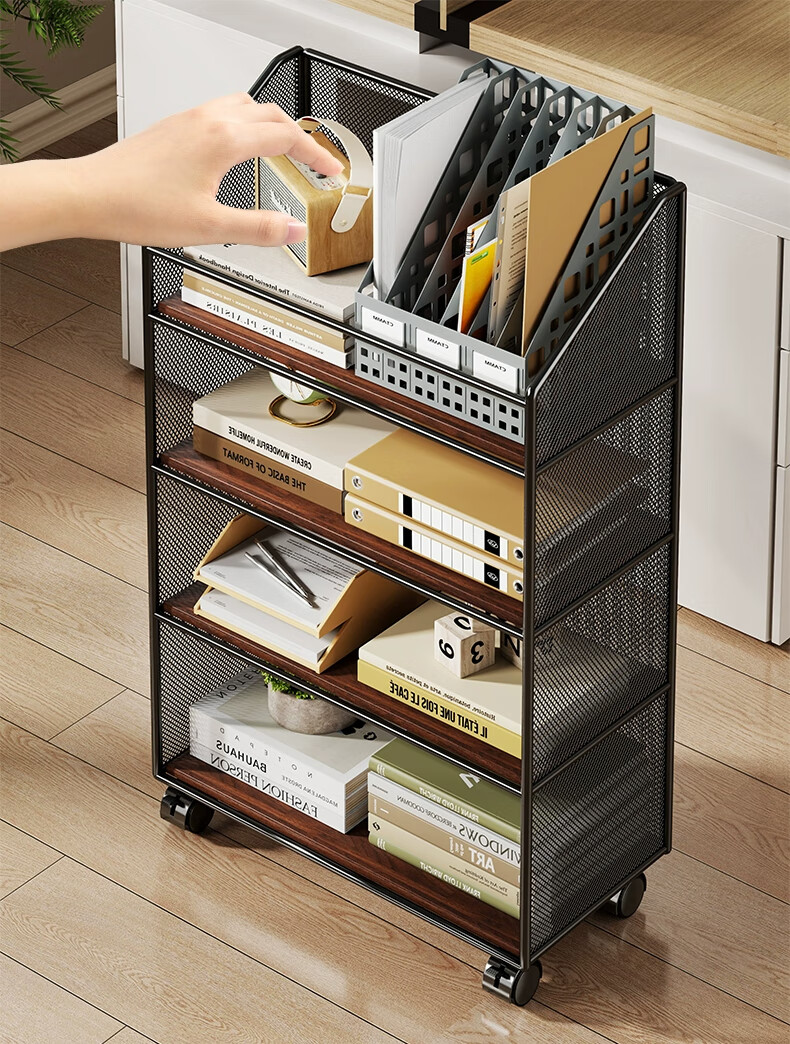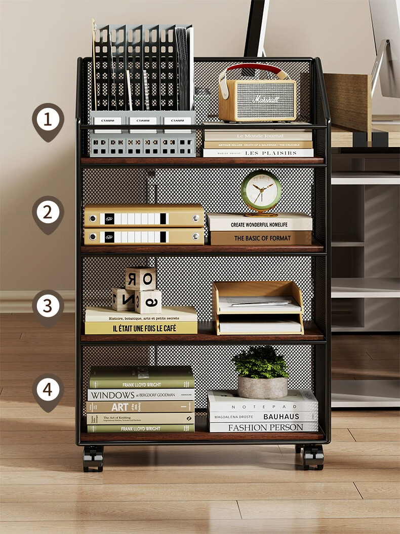 Julihui workstation storage rack removable multi-layer book and file organization desk simple storage rack desk simple bookshelf black teak board with wheels