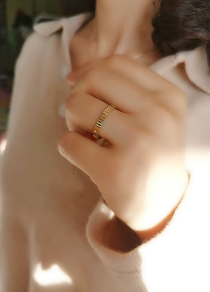 Ouyin spot rabbit Korean pure 14K gold ring female Korean drama Flower of Evil same style full circle ladder ring various flash No. 17 spot