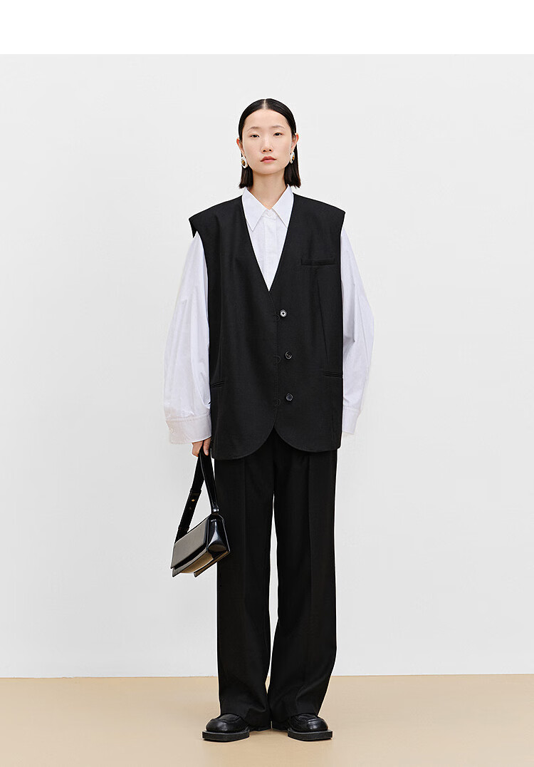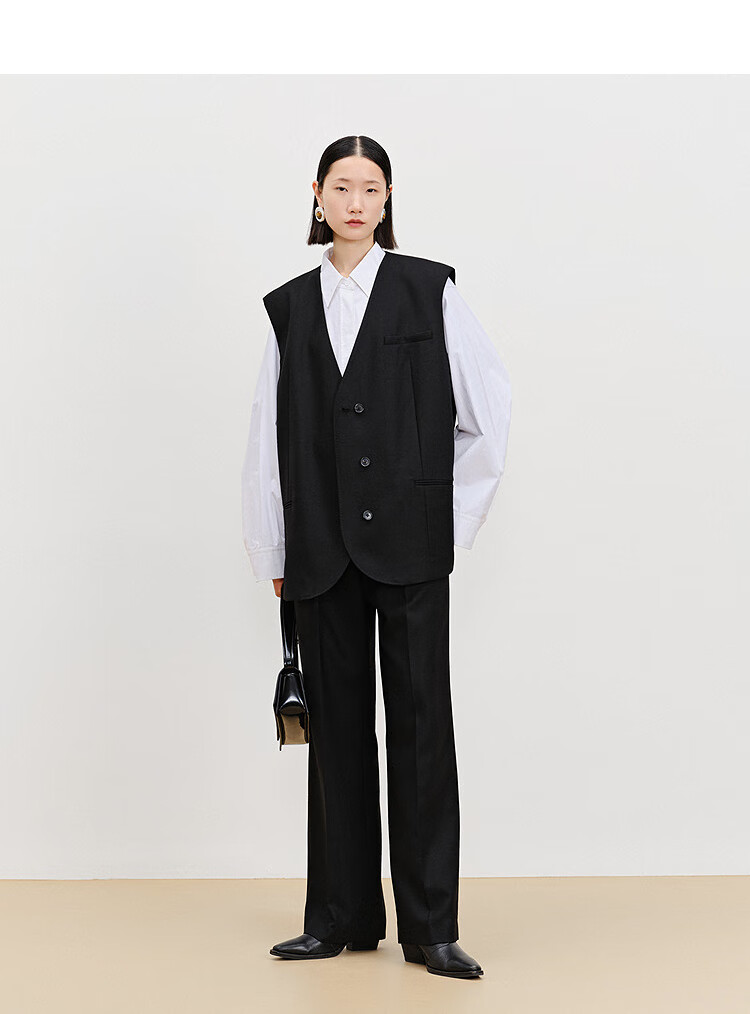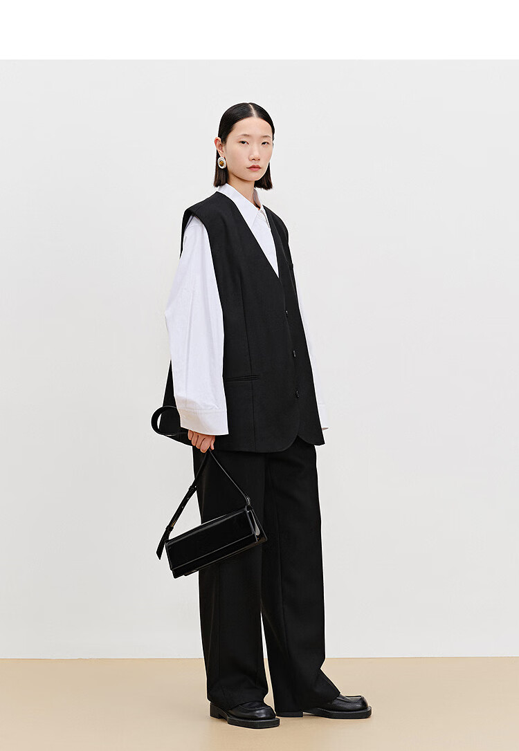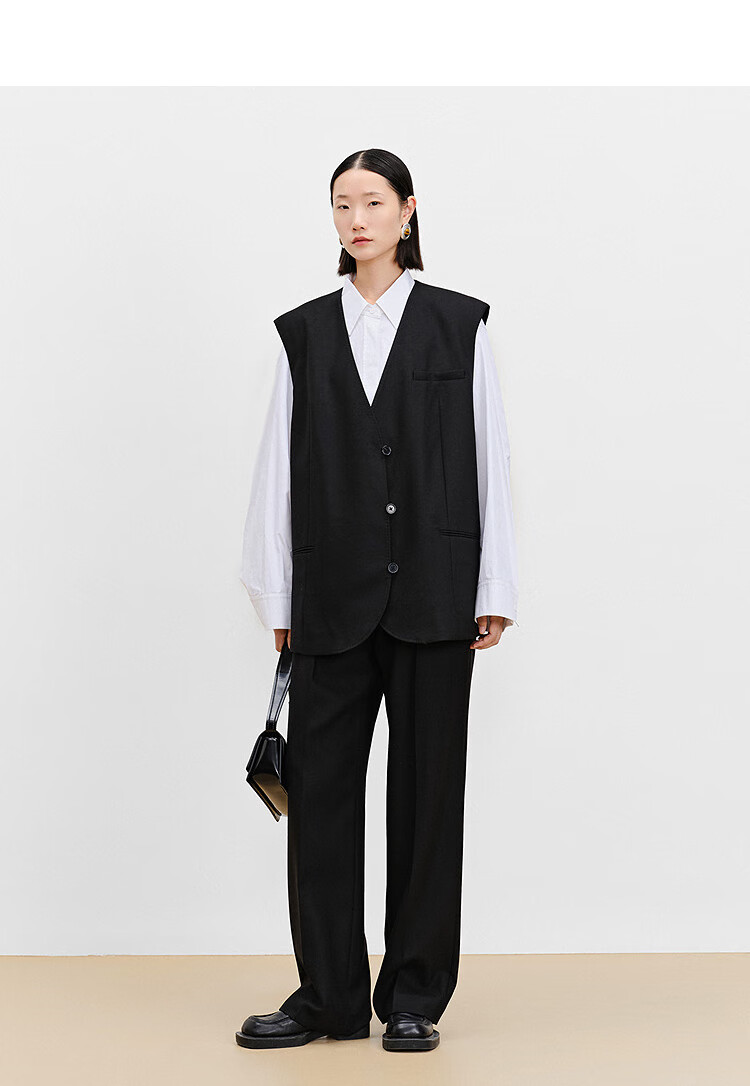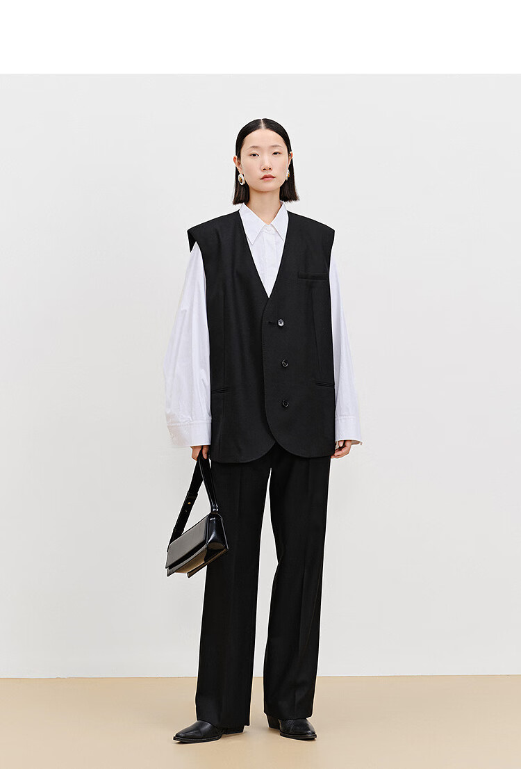 AUM (AUM) easy suit AUM 2025 spring new wool suit vest top black wide-leg pants black wide-leg trousers S