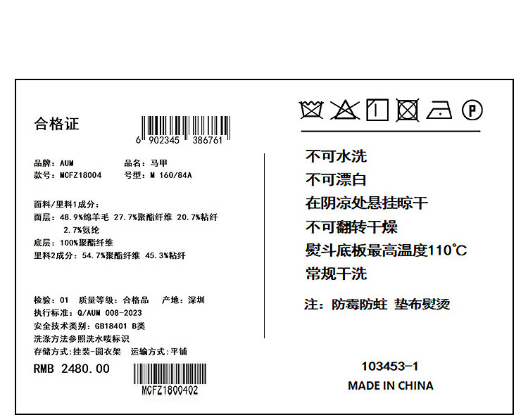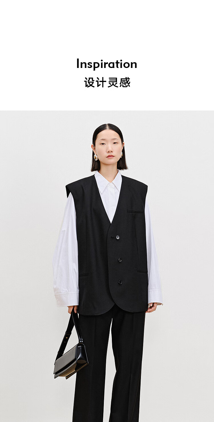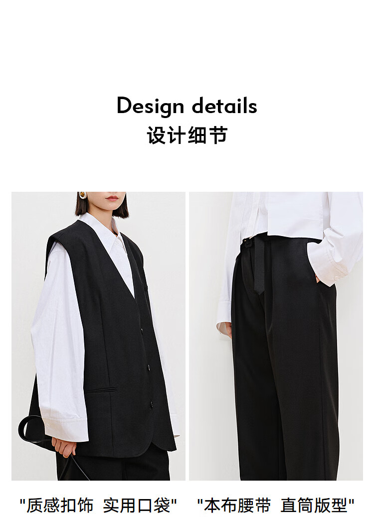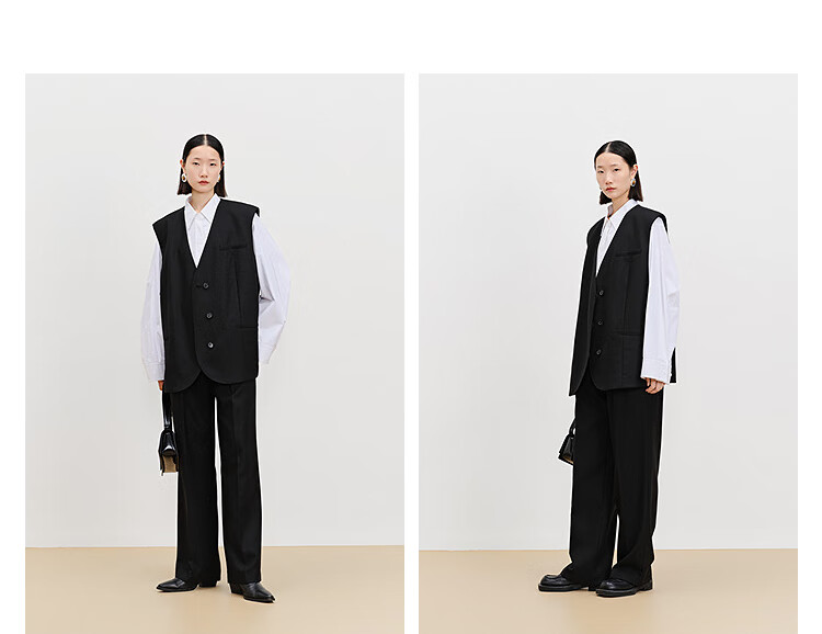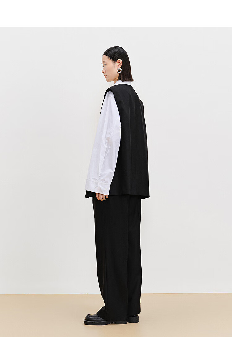 AUM (AUM) easy suit AUM 2025 spring new wool suit vest top black wide-leg pants black wide-leg trousers S