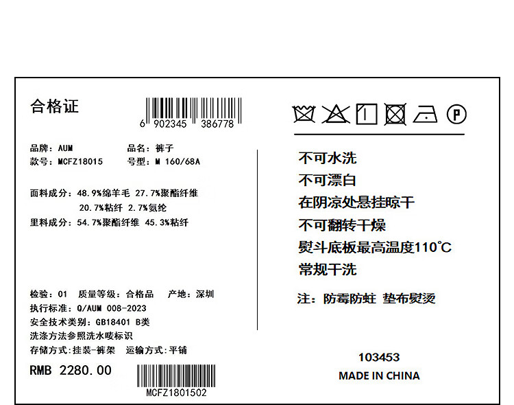 Outseam (cm) 99 cm 101.5 cm 104 cm 106.5 cm 109 cm