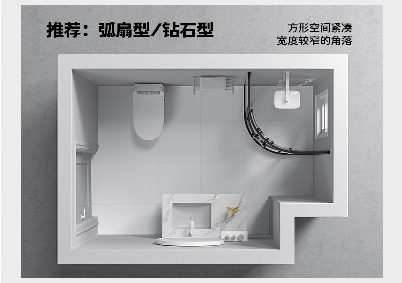 JOMOO fan-shaped small apartment integrated shower room partition dry and wet separation stainless steel bathroom E3 Yahei 1.0*1.0m (height 2m) customized