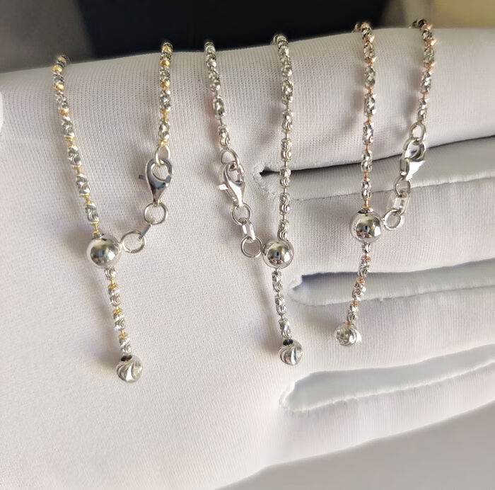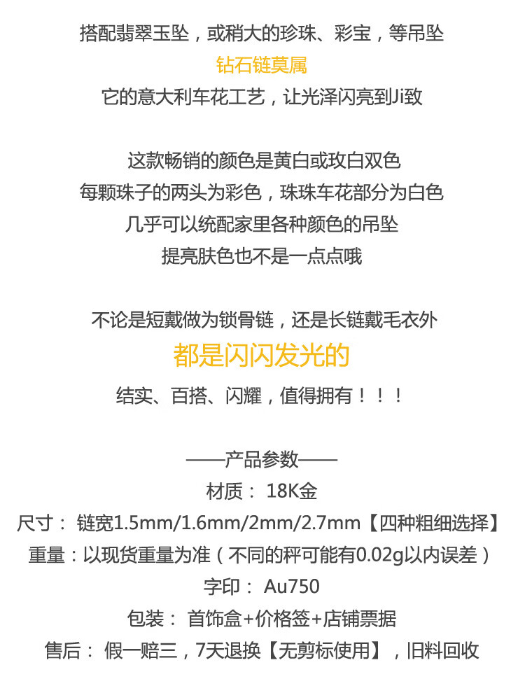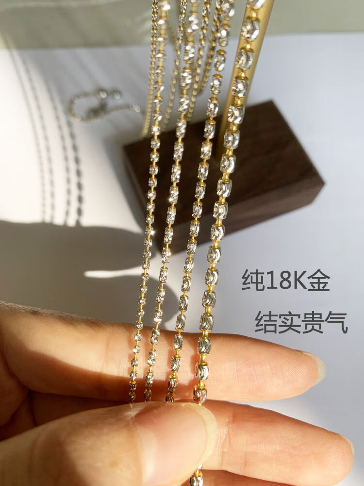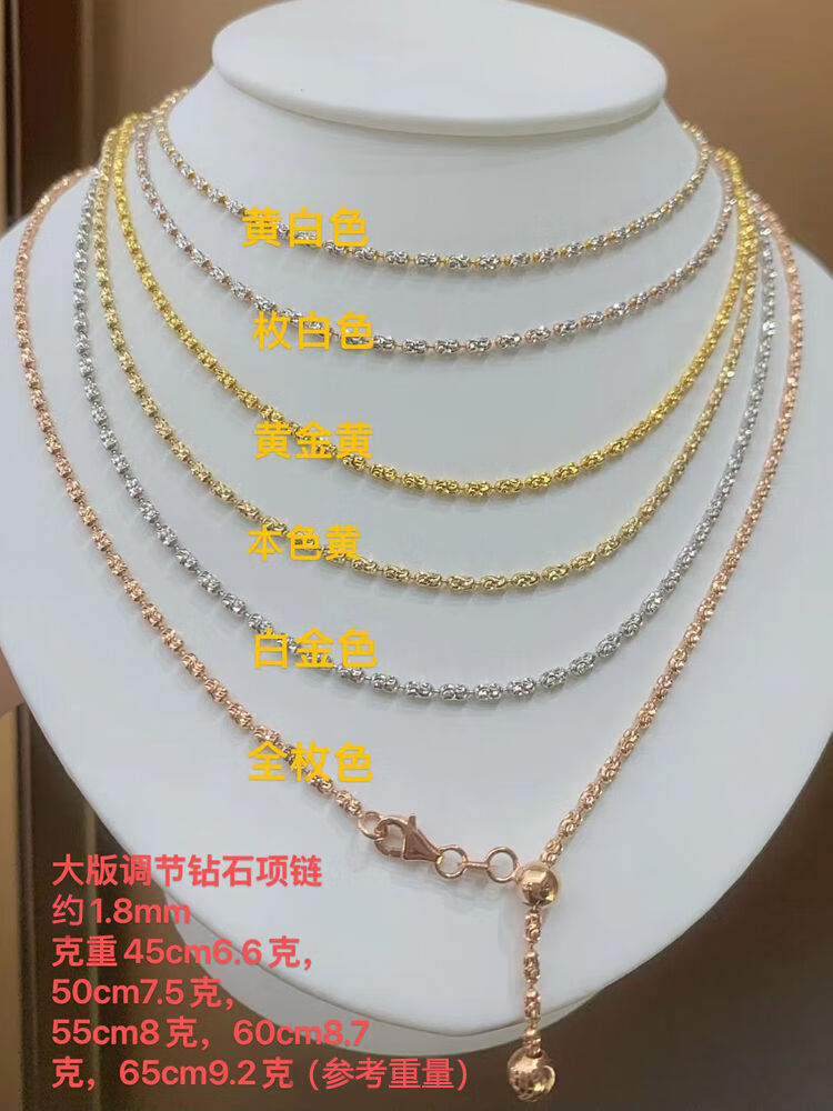 Oin 1.8mm Italian 18K gold meteor diamond chain platinum two-color gold rose gold adjustable chain necklace for women 1.8mm white gold 60cm about 8.5 grams adjustable style