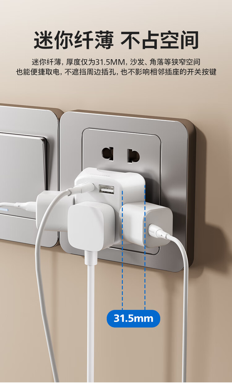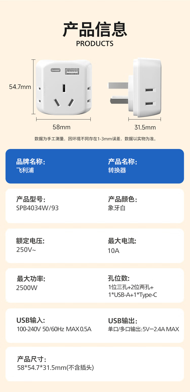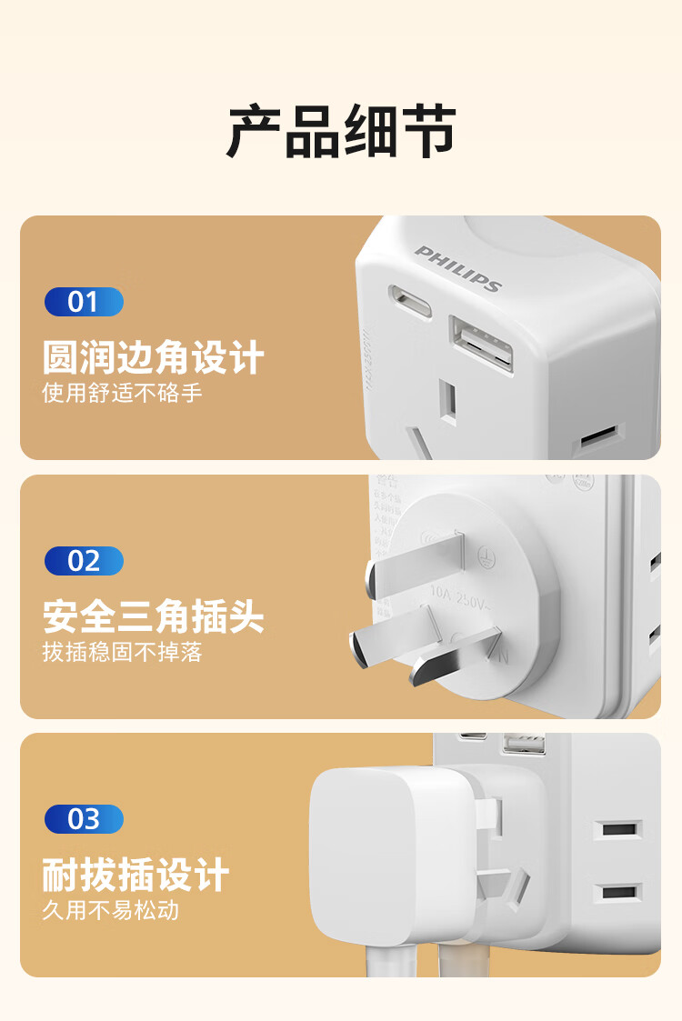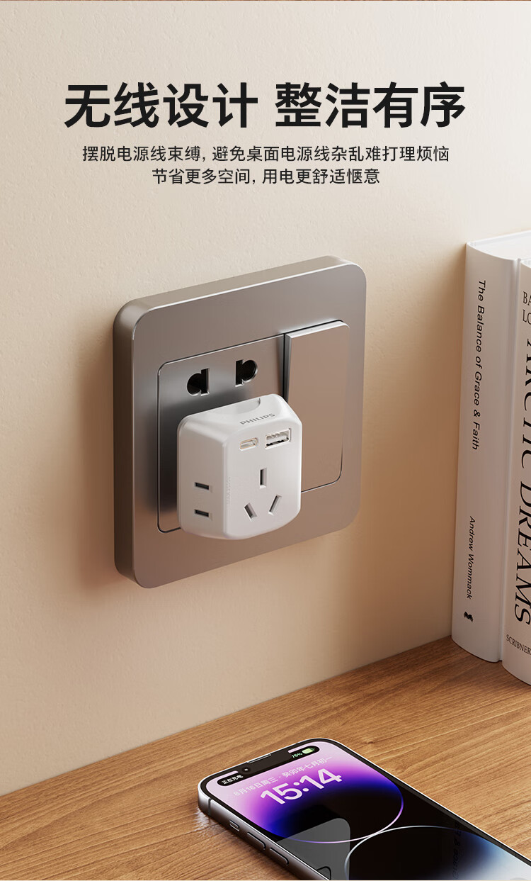 Philips (PHILIPS) Mini Rubik's Cube Socket One to Five Plug Converter Suitable for Bedroom, Kitchen and Bedroom Wireless Socket Converter/Extender Master Control 1 to 5 Mini USB Converter SPB4034