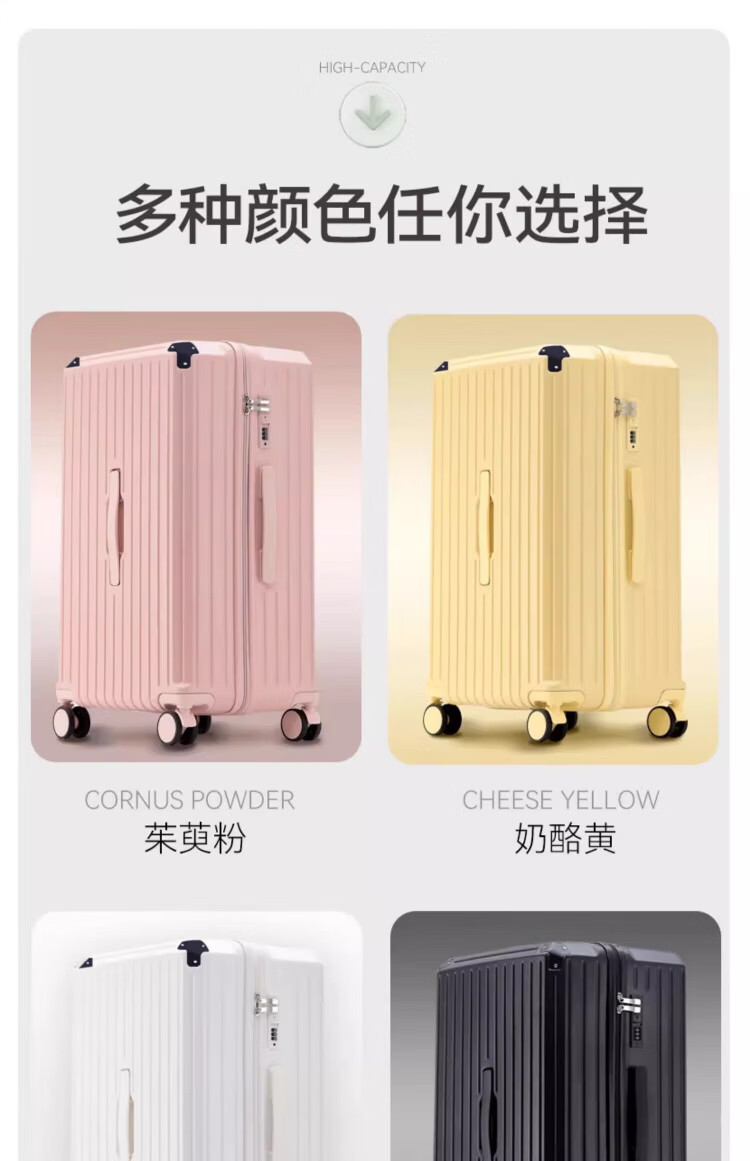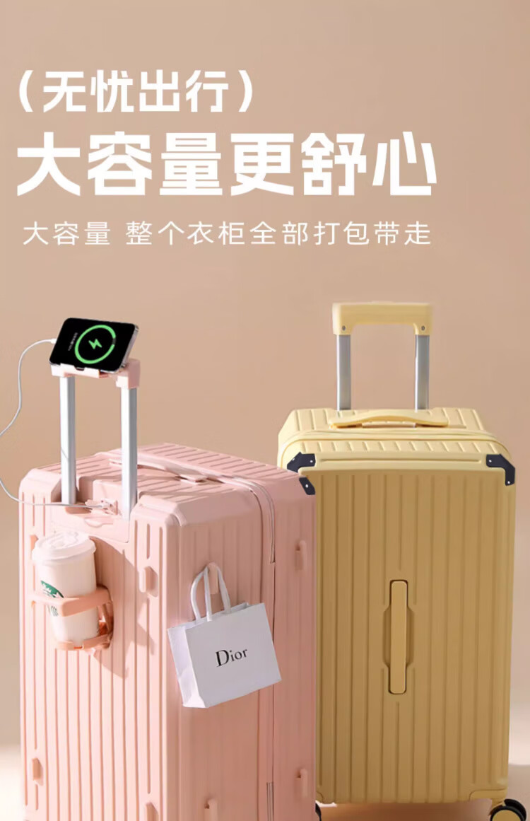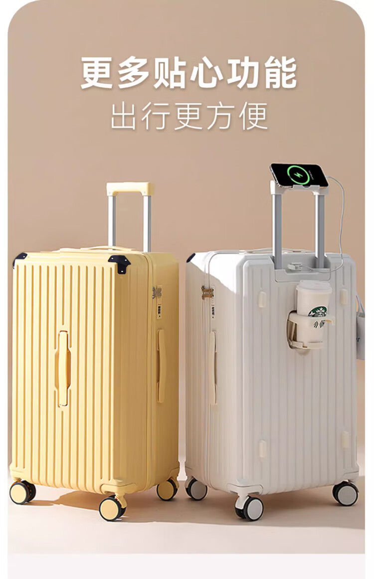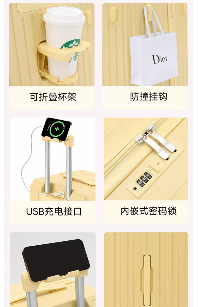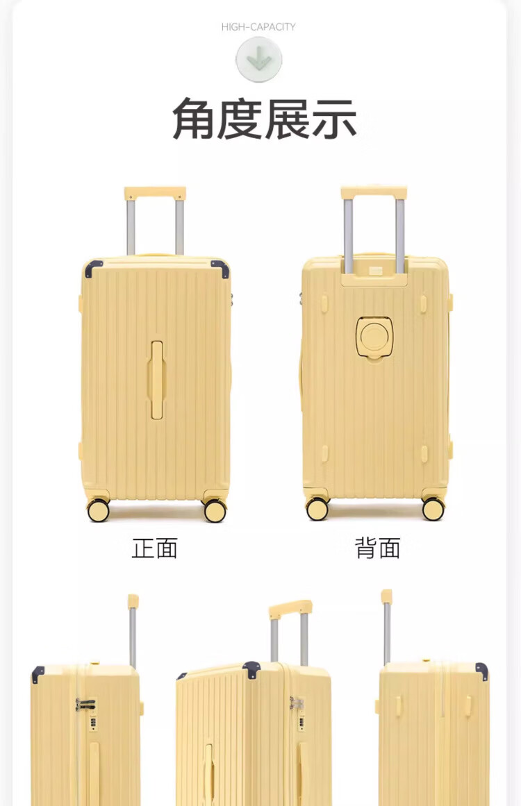 Bei Chuzhong suitcase 26-inch large-capacity trolley password box student suitcase suitcase men's strong and durable aluminum frame box cheese yellow mobile phone holder + front cup holder 26-inch large capacity for returning to school abroad