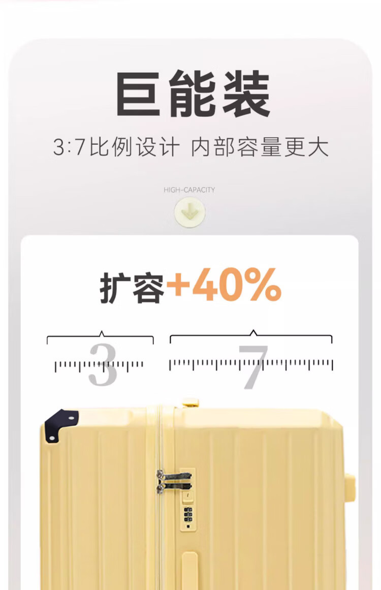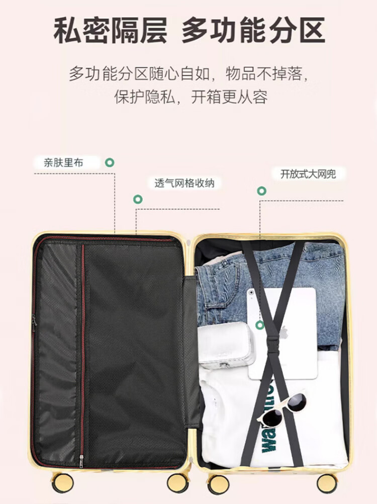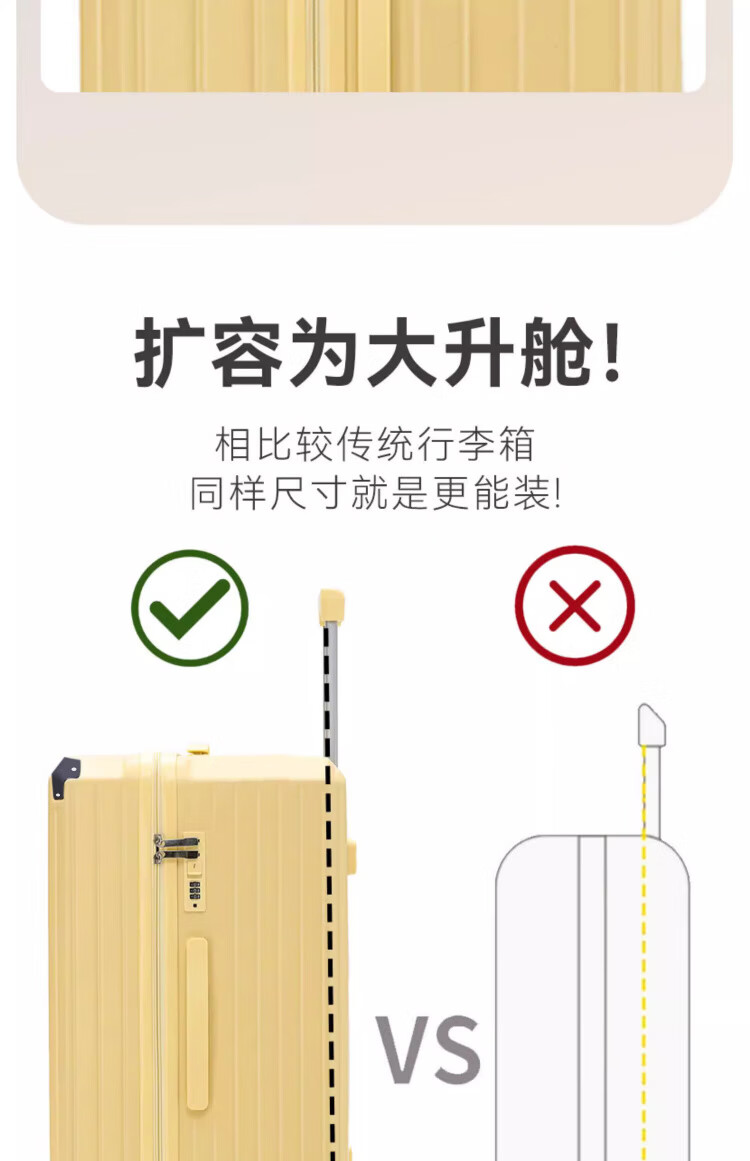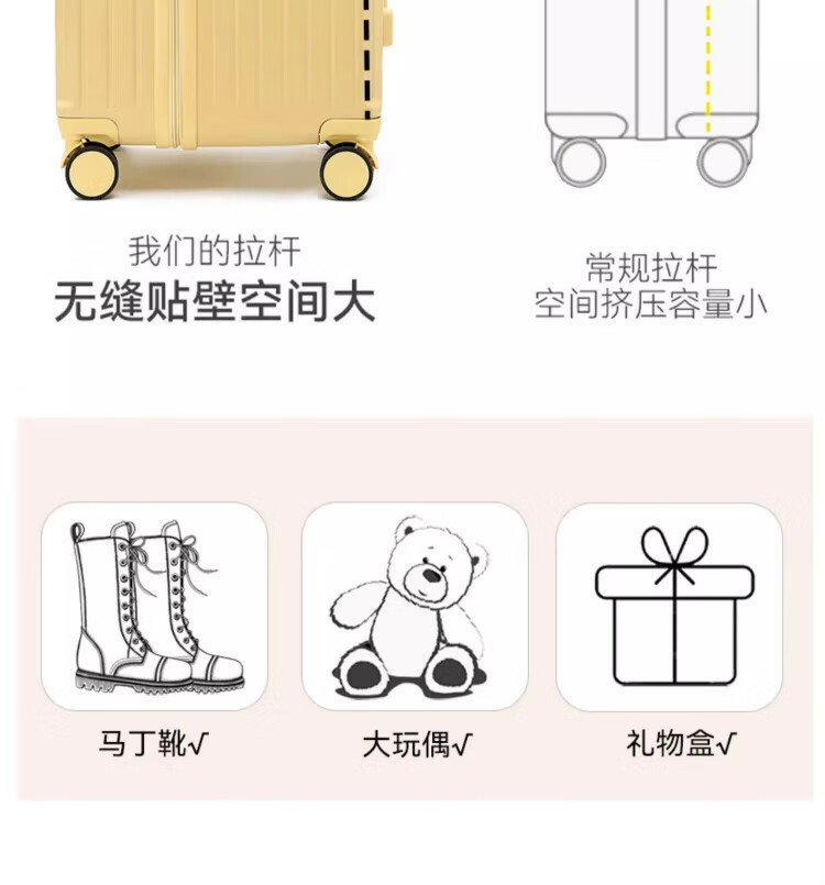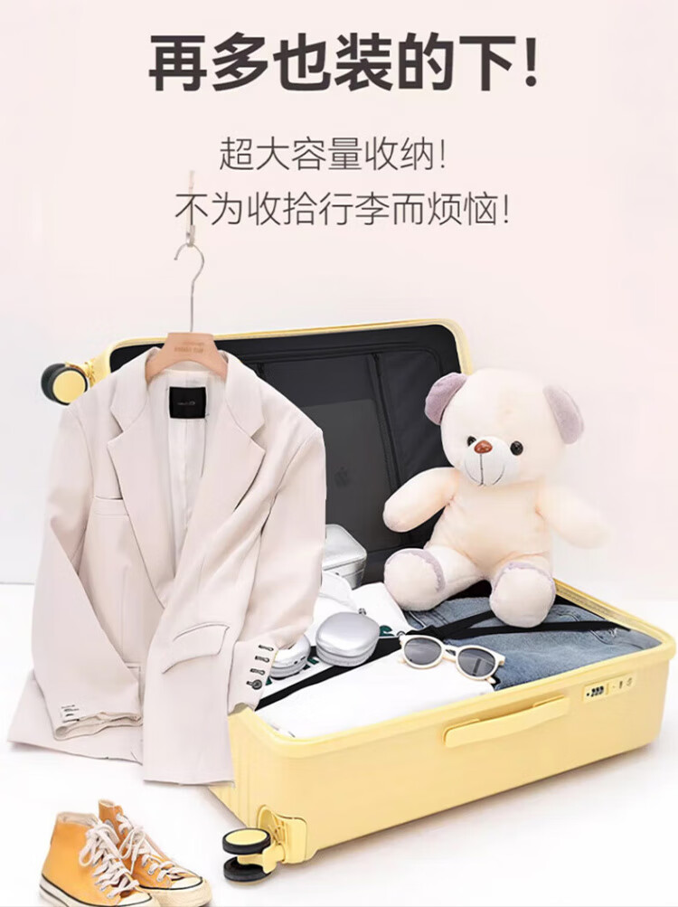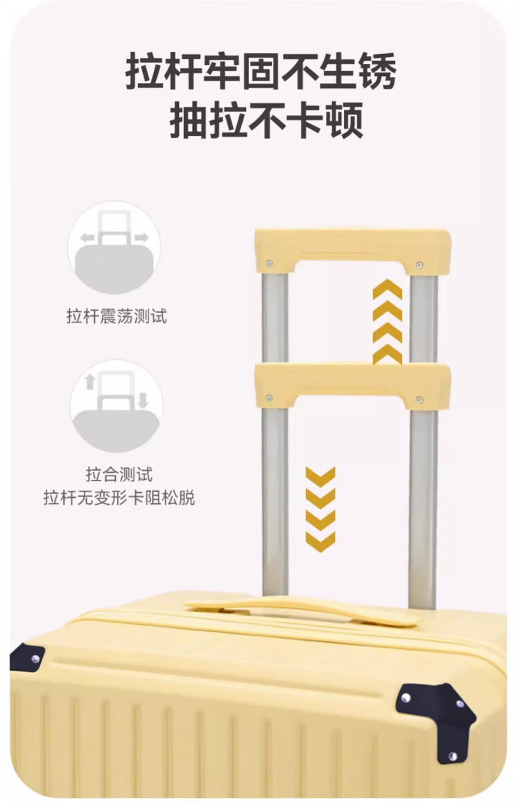 Bei Chuzhong suitcase 26-inch large-capacity trolley password box student suitcase suitcase men's strong and durable aluminum frame box cheese yellow mobile phone holder + front cup holder 26-inch large capacity for returning to school abroad