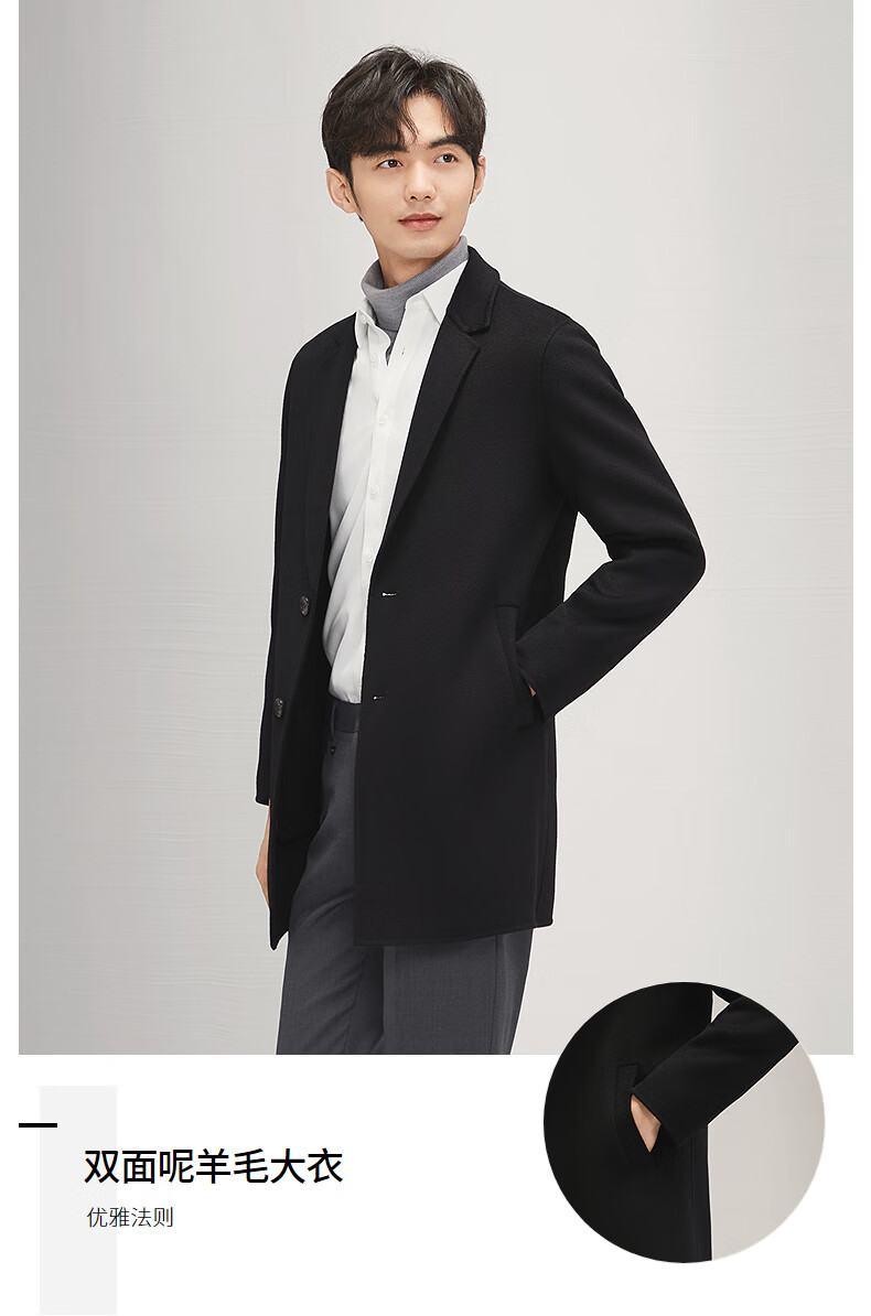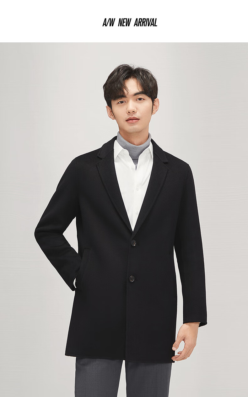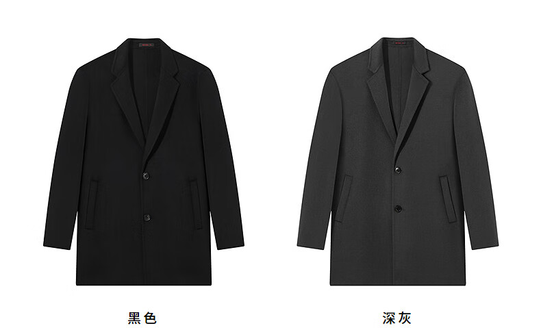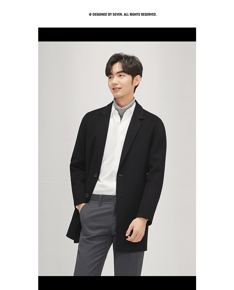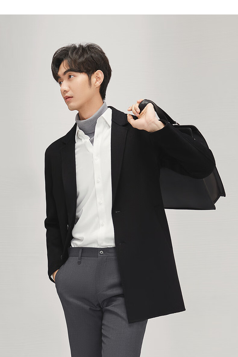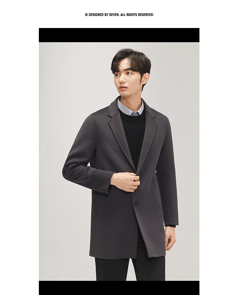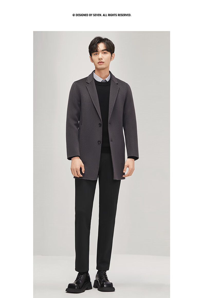 Qipai 100% wool men's woolen coat spring and summer business casual mid-length double-sided woolen coat dark gray 2XL