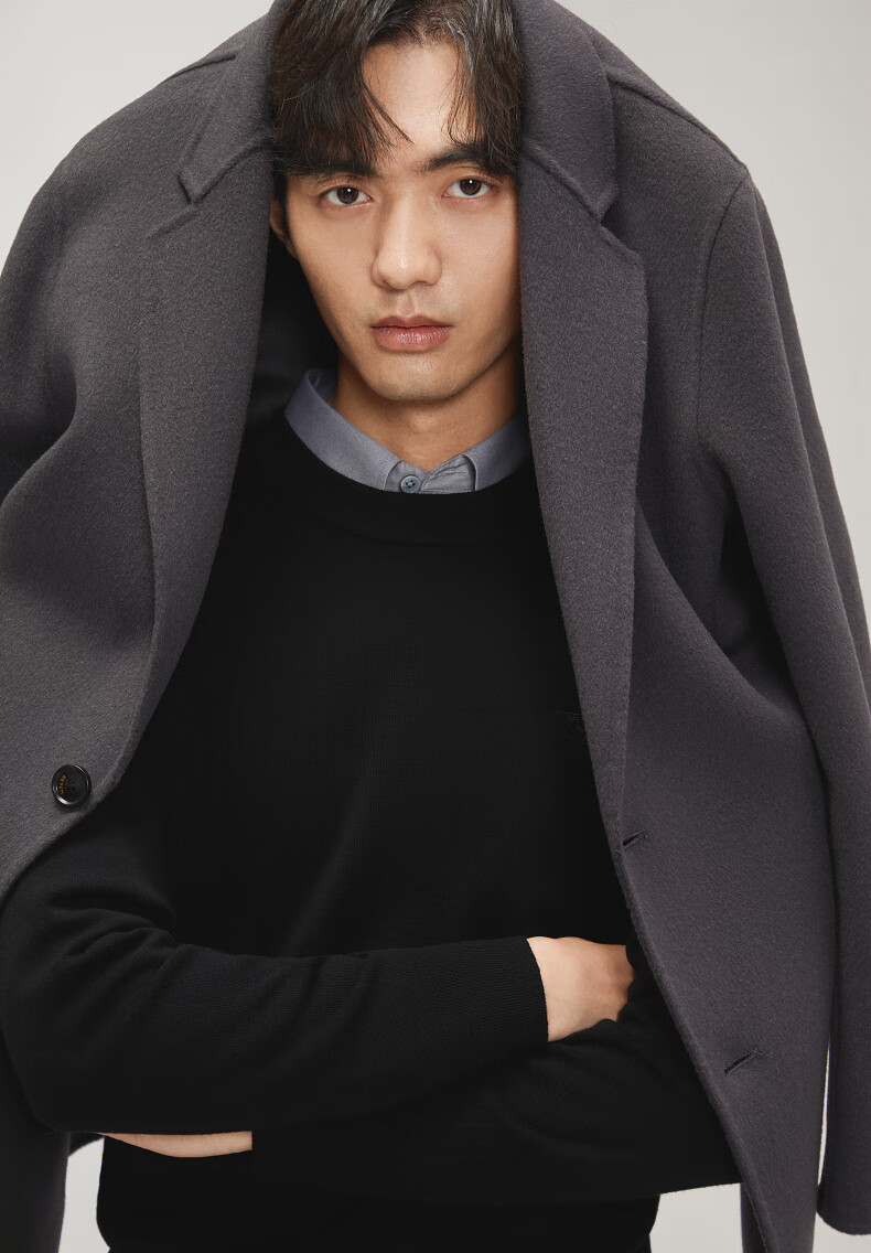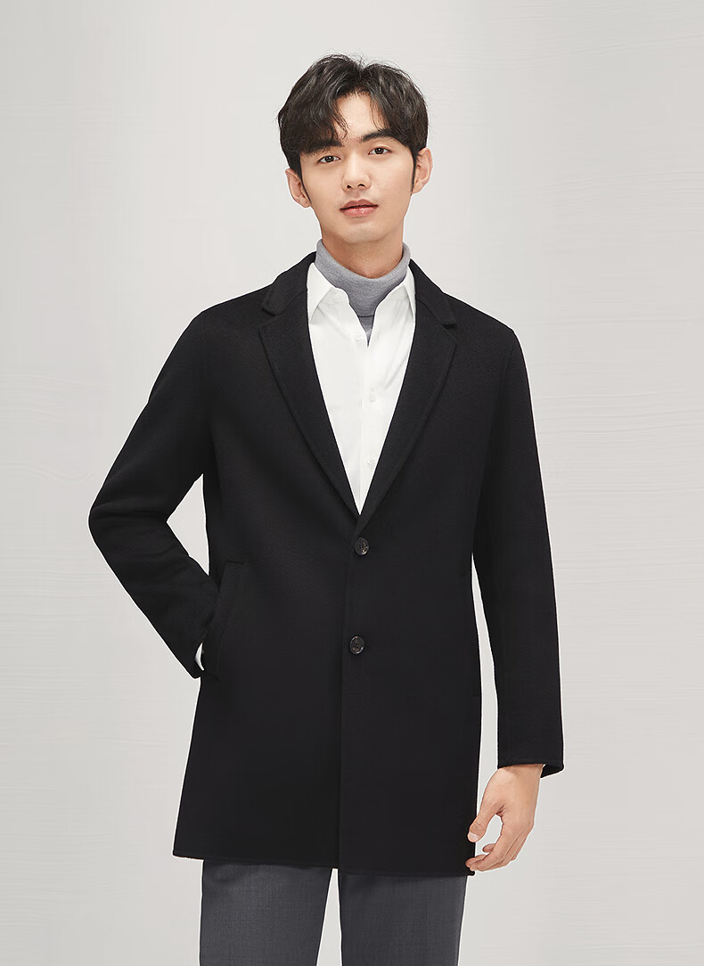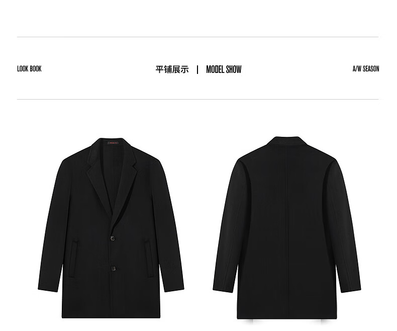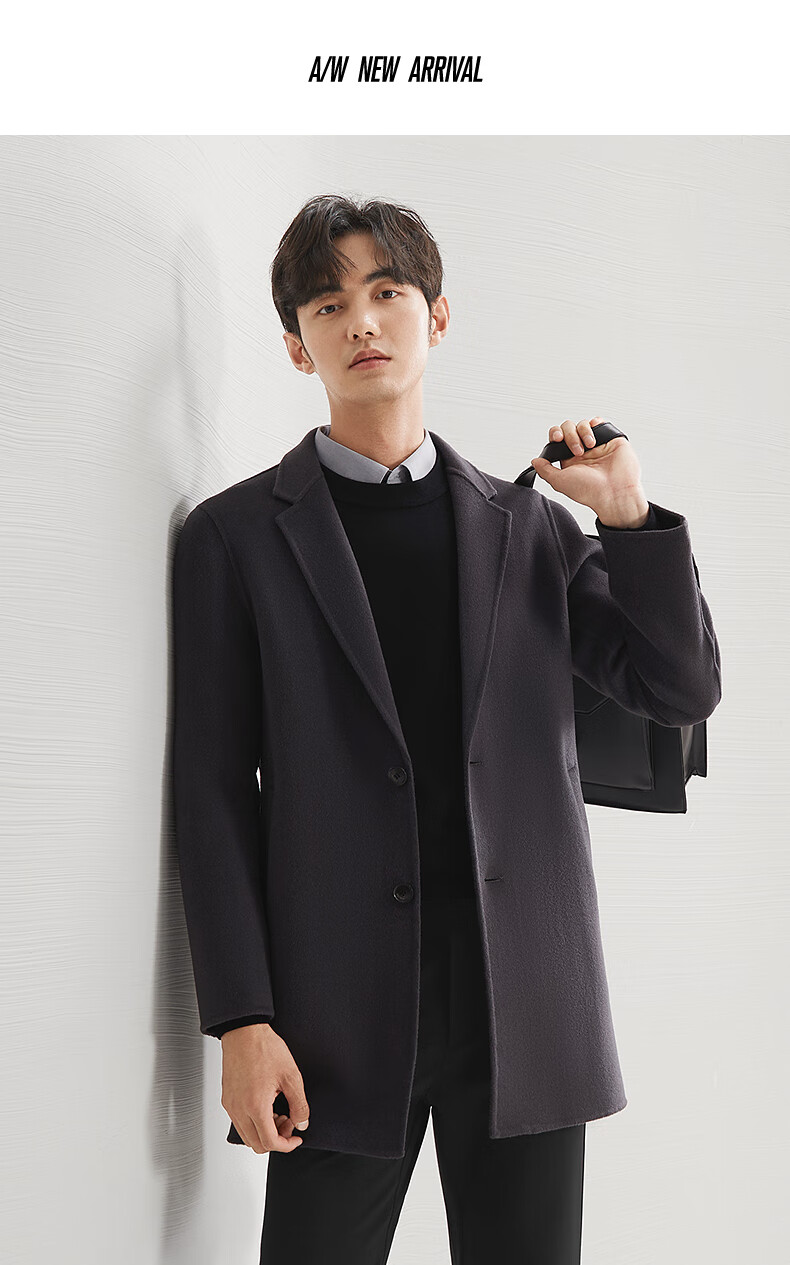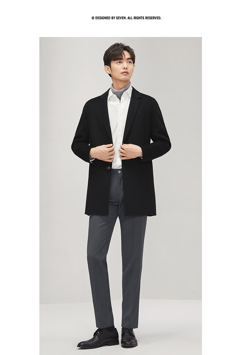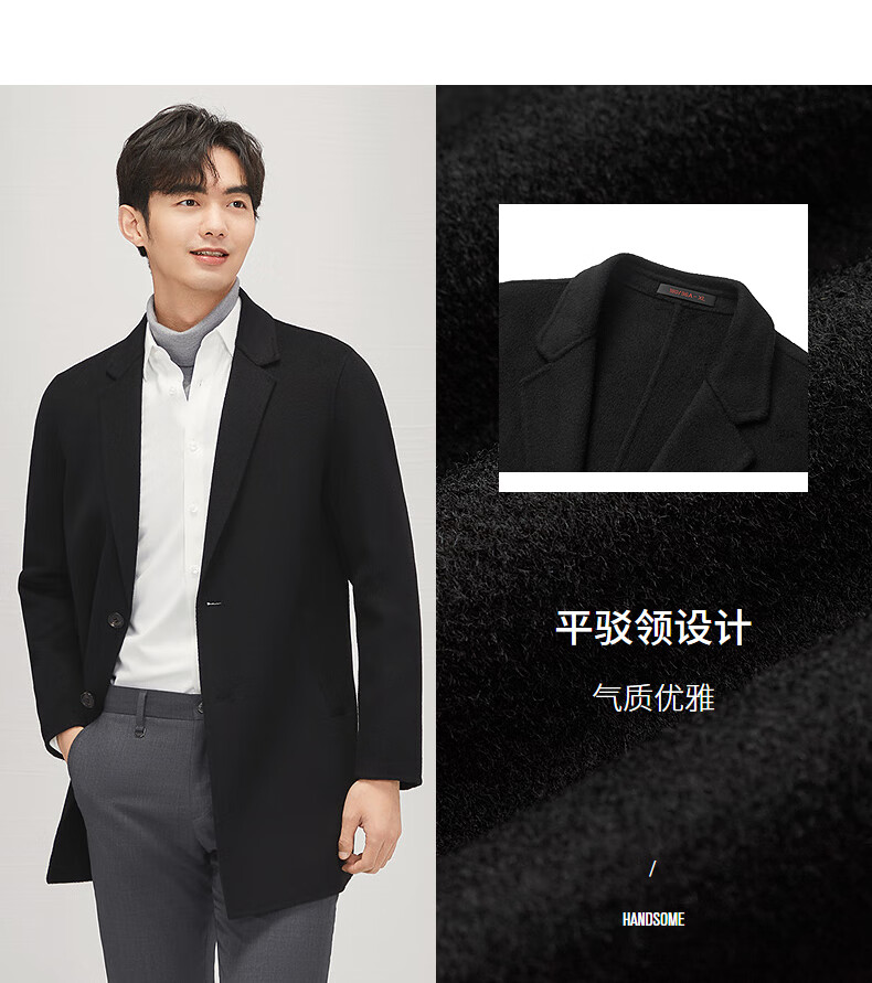 Qipai 100% wool men's woolen coat spring and summer business casual mid-length double-sided woolen coat dark gray 2XL