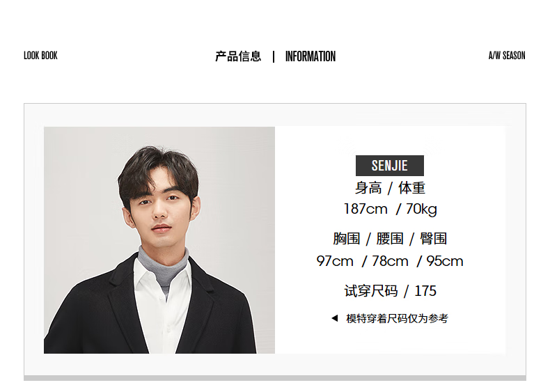 China (cm) 165 / 88-90 170 / 96-98 175 / 108-110 180 / 118-122 185 / 126-130