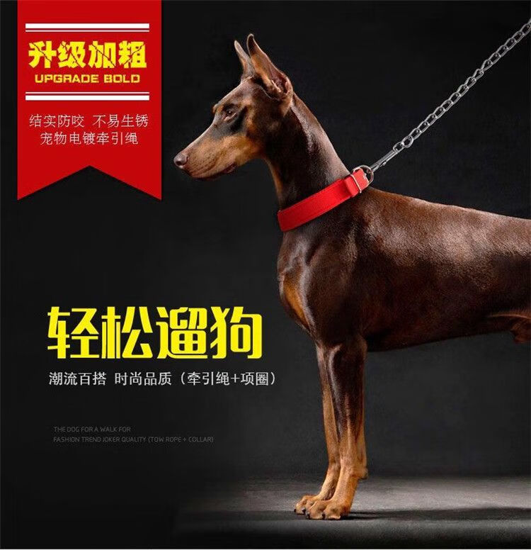 Dog leash anti-bite pet walking leash small, medium and large dog universal dog leash collar dog iron chain 1.7m traction + collar (red) diameter 2mm 6Jin Jin equals 0.5kg for indoor dogs
