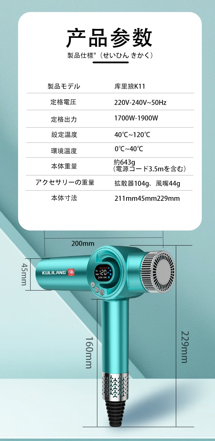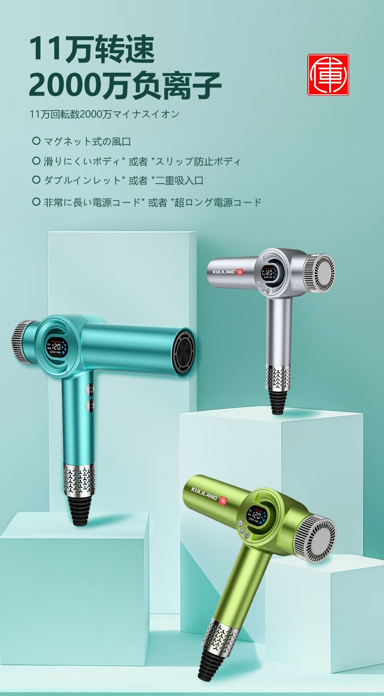 Currywolf third generation hair dryer for barbershops, negative ion hair care high-power men's hairstylist hair dryer supreme version Currywolf second generation light luxury white gift box review and free stand