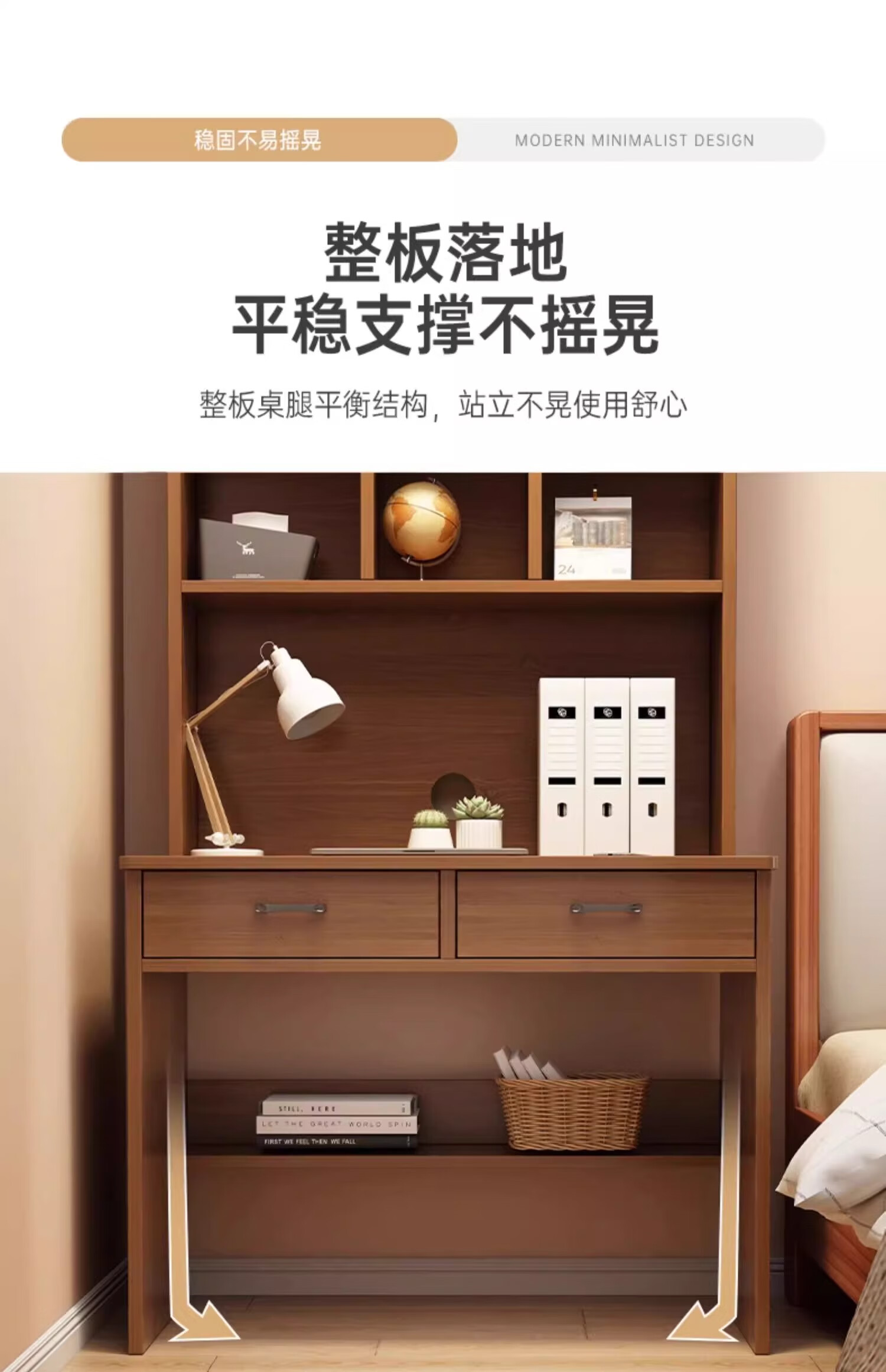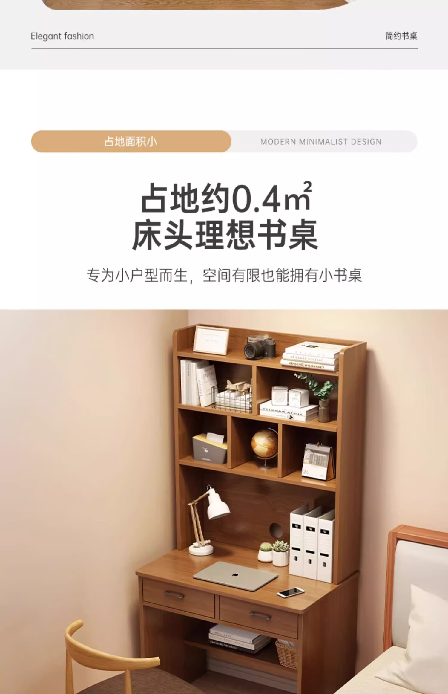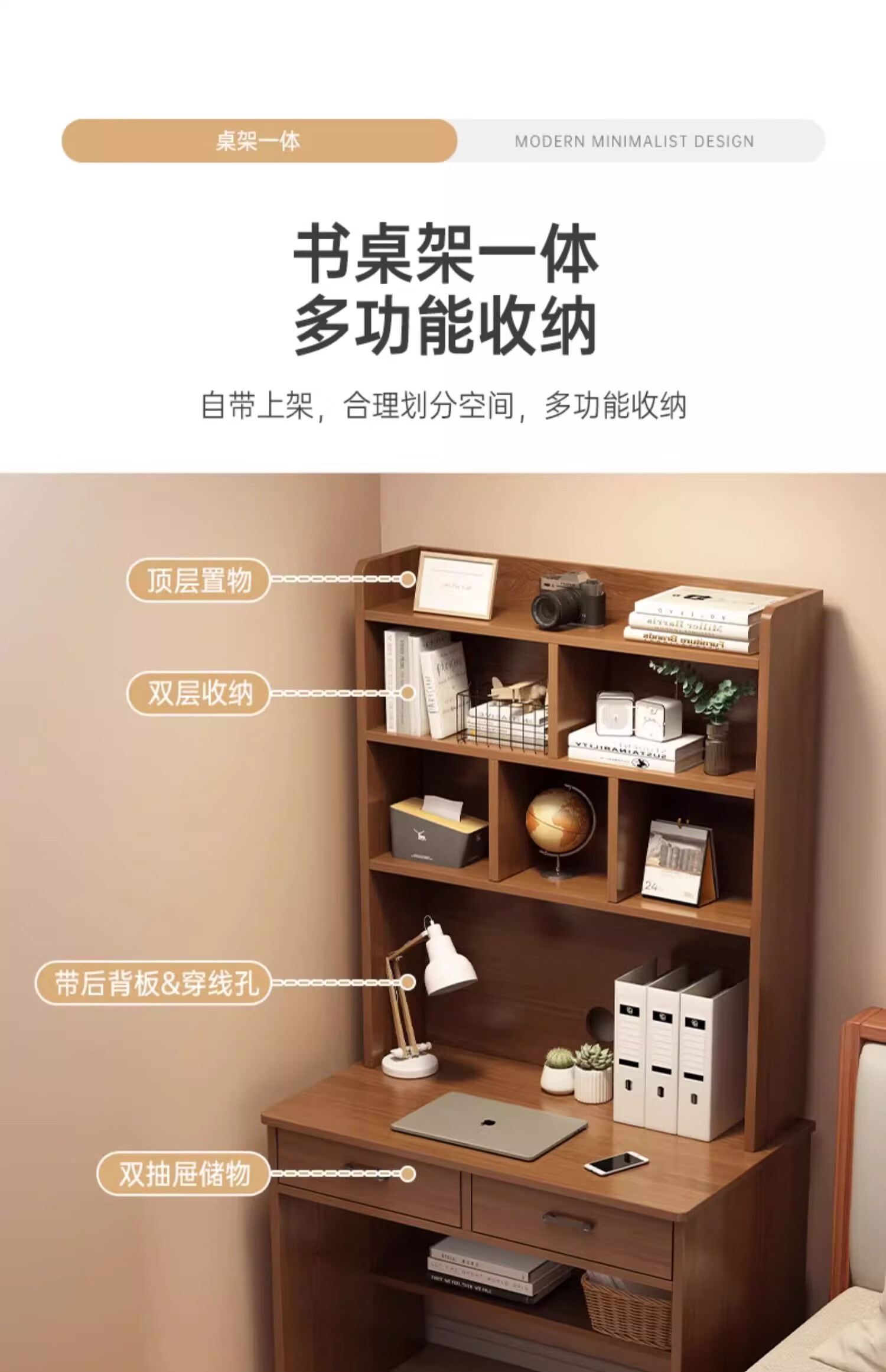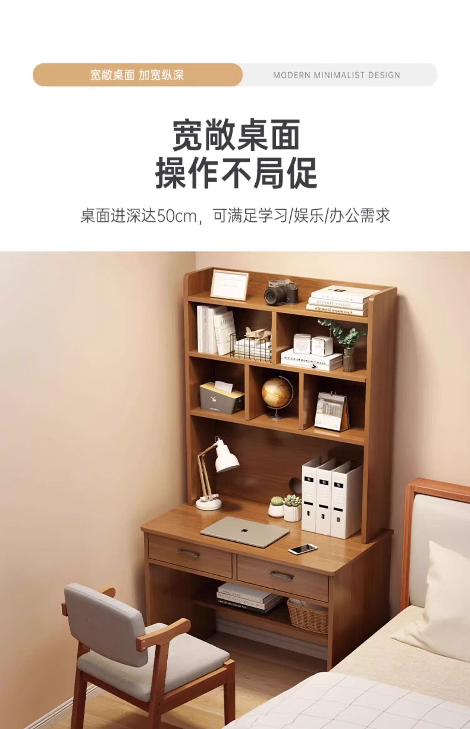 First Forest computer desk desk bookshelf integrated table home study table writing desk bedroom student writing desk small apartment table three-layer single table hazy walnut color 80cm self-assemble