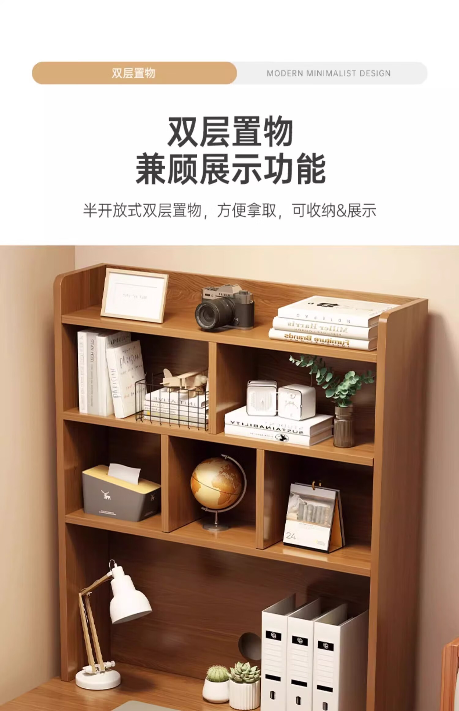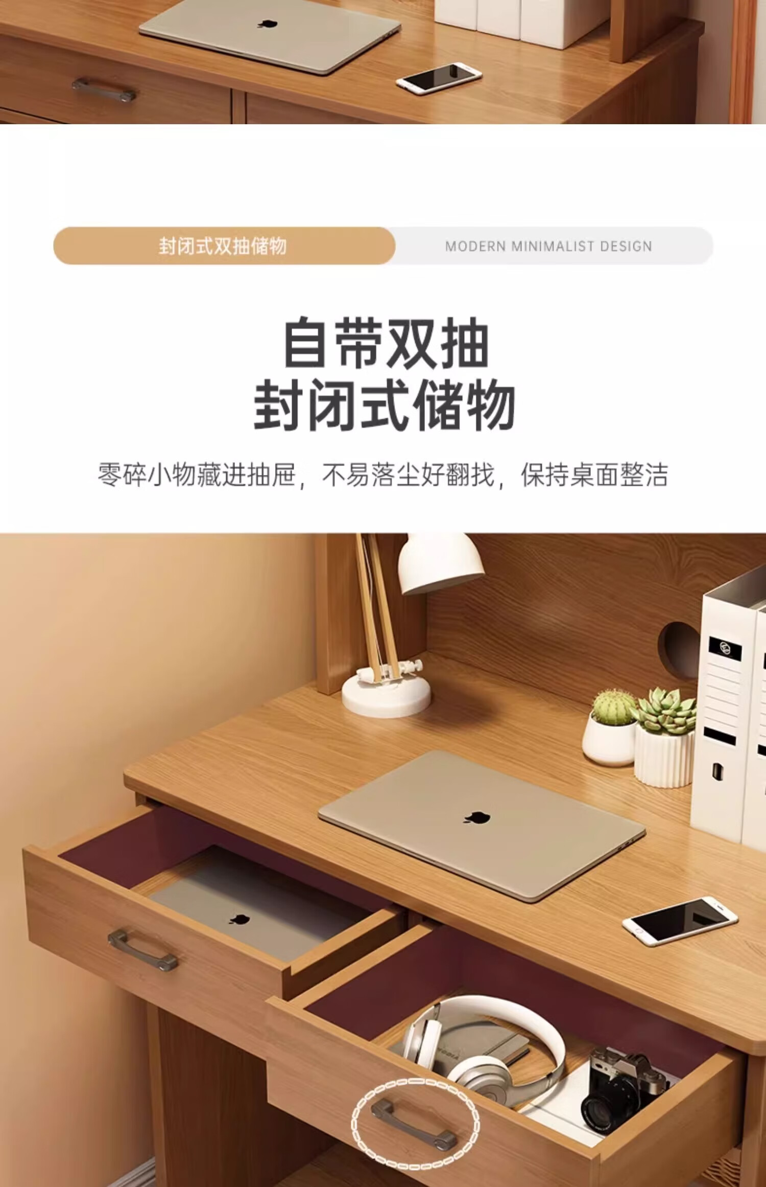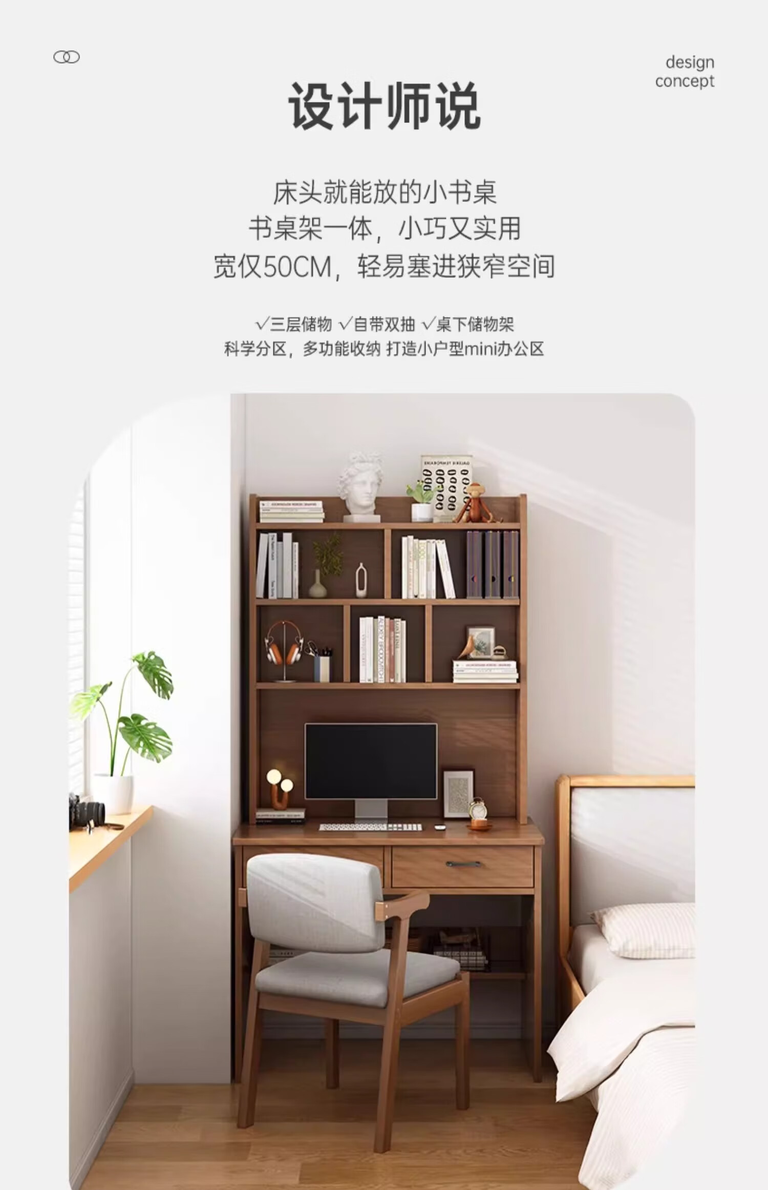 First Forest computer desk desk bookshelf integrated table home study table writing desk bedroom student writing desk small apartment table three-layer single table hazy walnut color 80cm self-assemble